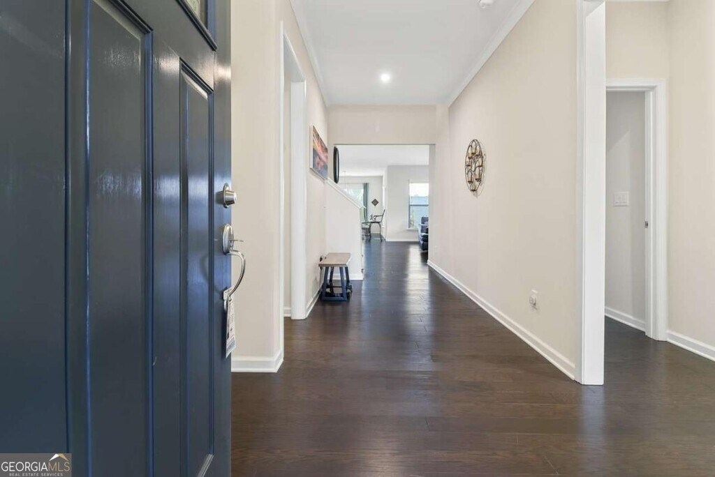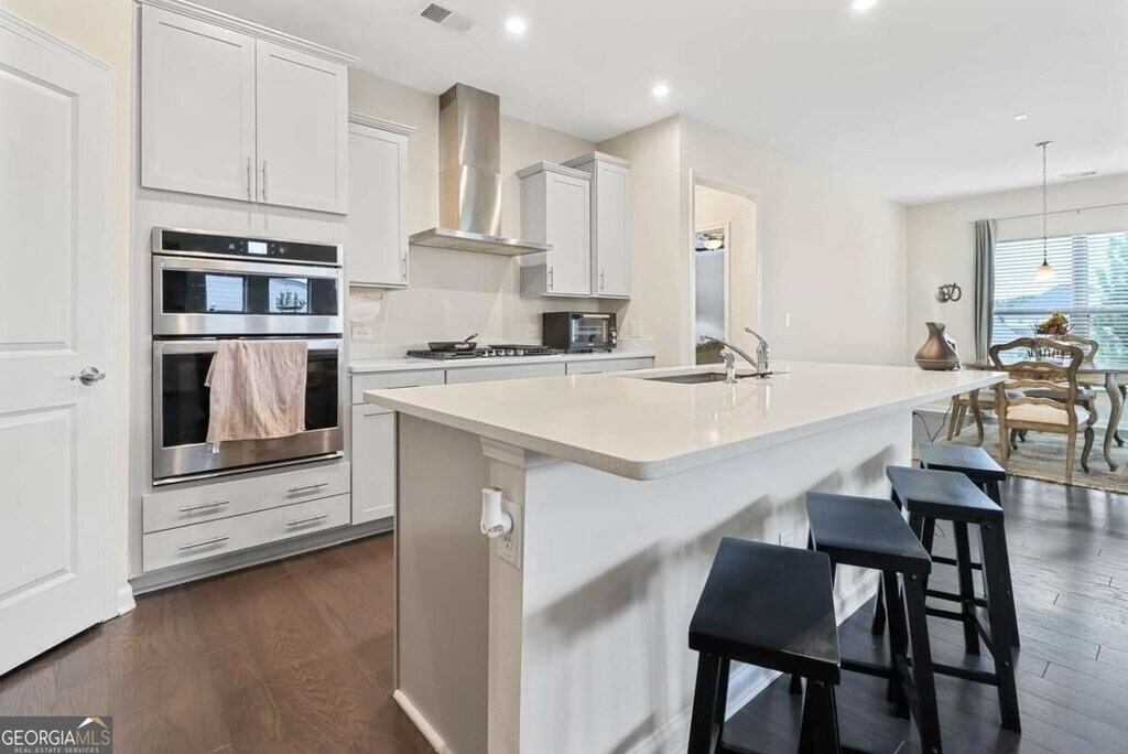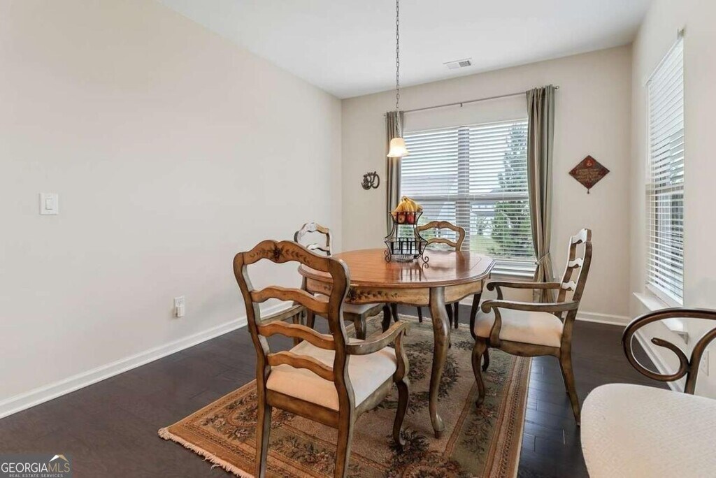 This Exquisite home has everything you looking for. Everton CREEKSIDE Off McDuff Pkwy! Beautiful Summerwood plan has 4 bedrooms and 3 full baths- 3 bedrooms and 2 baths on main. Second floor has giant bonus room with 4th bedroom and 3rd full bath. Extra floored walk-in storage. Hardwood floors and stainless-steel appliance. Large island. Covered porch. 2 car garage with room for golf cart plus storage closet. 2 minute walk to park, playground, pool and club house facility. Golf cart paths to PTC shopping and parks. Great Schools! Easy drive to Atl/airport.