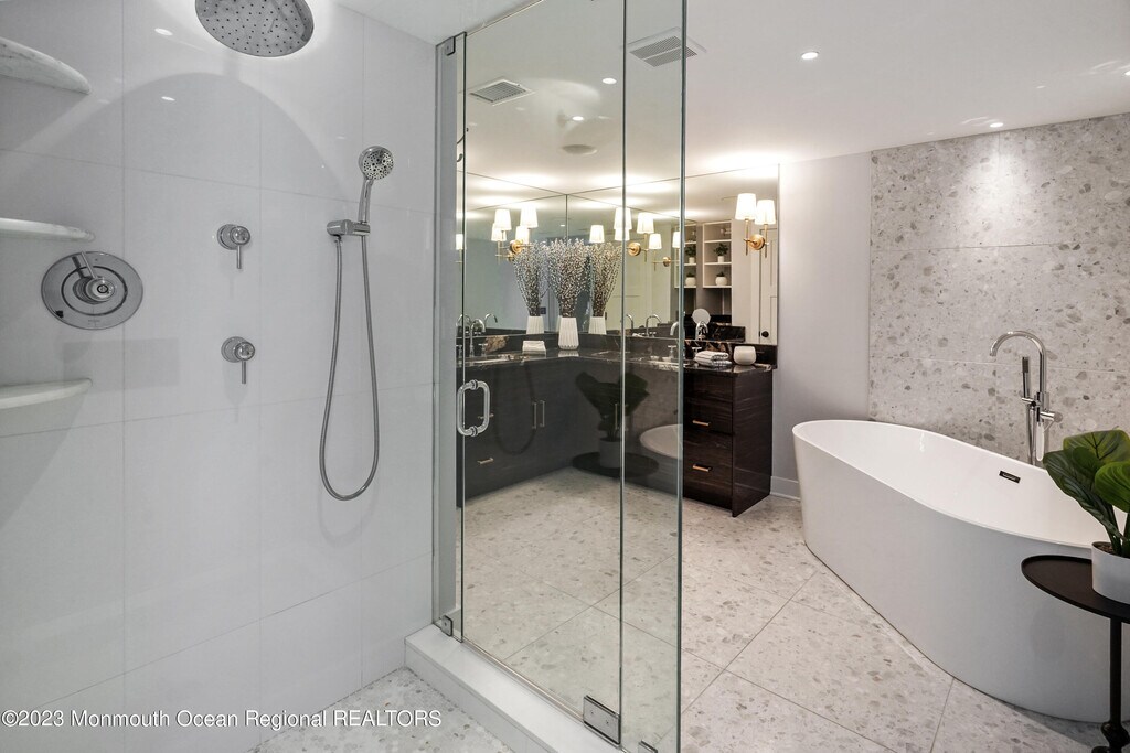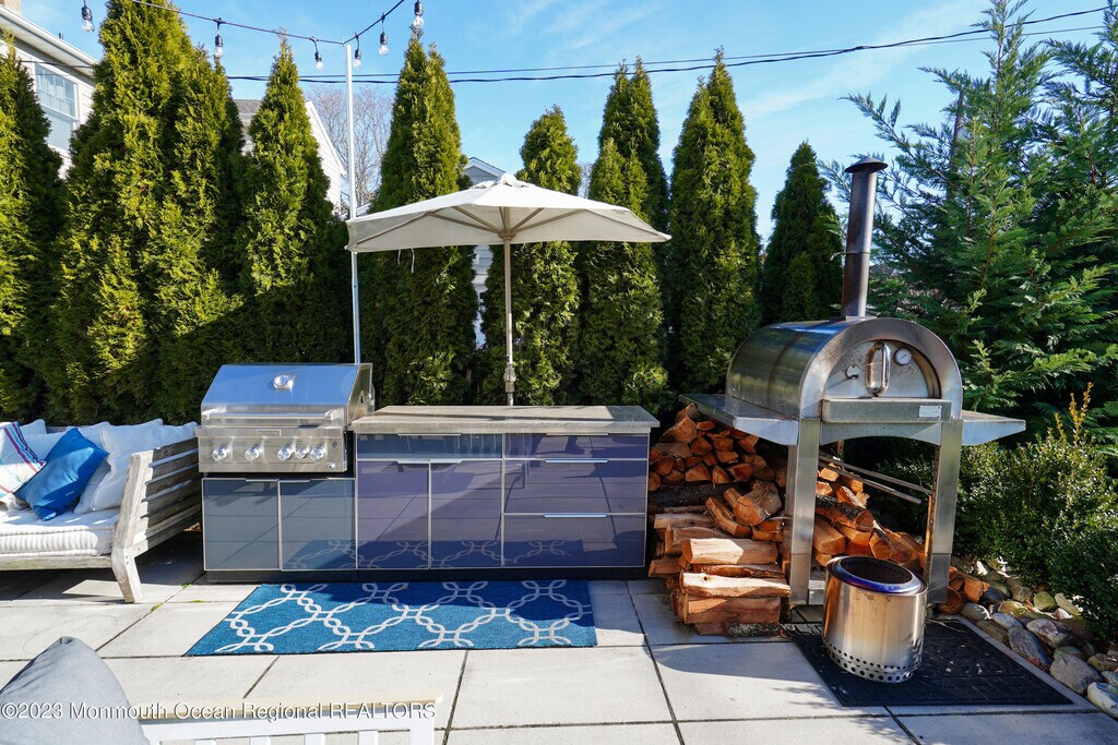 Summer 2026 renovated home w/ stunning primary suite that features wide plank flooring,exquisite bath w/ oversized shower & soaking tub. First floor bedroom and full bath,open kitchen w/ Wolf & Viking appliances and all new baths. Partial finished basement w/ living room & laundry room. Custom grill w/ glass cabinetry,large pizza oven,outdoor shower,ample comfy seating with direct access to converted garage with fireplace and open concept bar area. Outdoor living at its best! Bikes,5 beach badges,membership town pool access to north end pool,half locker at the beach and all a short distance to beautiful downtown Spring Lake and beach. This summer rental is a true haven and not to be missed! Two-week min in August. $23k