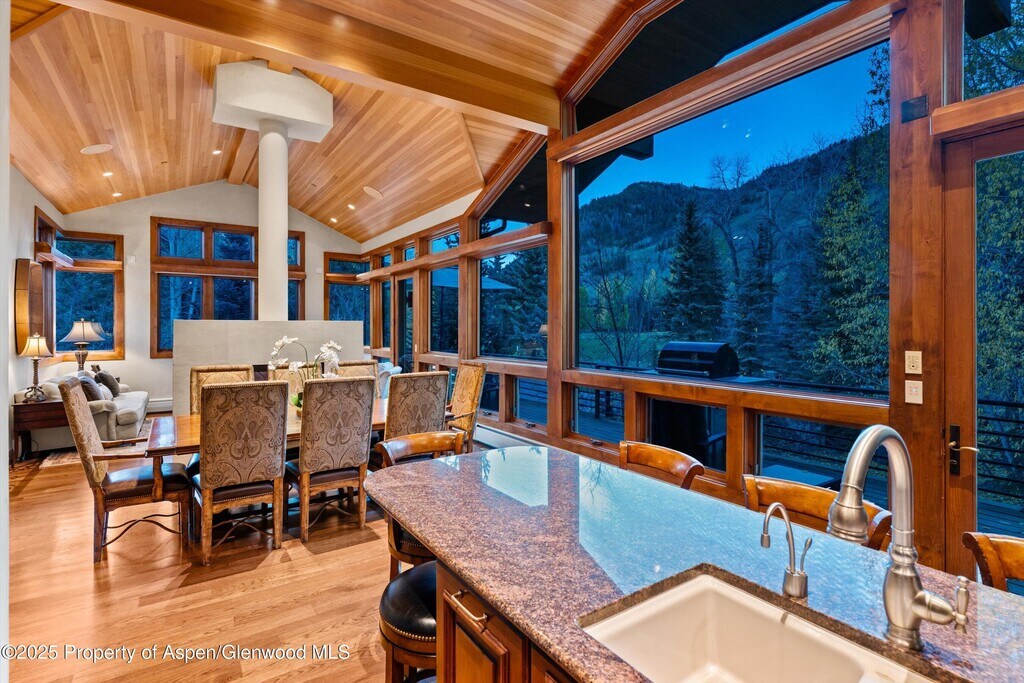 Located just three blocks from Aspen's downtown commercial core on a quiet residential street this is the perfect downtown home for your Aspen retreat. Enjoy your morning coffee while watching the Gondola run on Aspen Mountain. Spend time with your friends and family while food is prepared in the upstairs kitchen featuring an open floor plan conducive to mingle between the kitchen,open dining and living areas. Primary suite is upstairs with an adjacent office. The middle level is comprised of two guest suites,kitchenette and media room. The downstairs recreational area offers a pool table,exercise equipment,bunk room with a jack and Jill bath to the fifth bedroom. The bedding is: King,King,Queen,Queen,Bunk with Two Twins STRC 083468 MLS ID 184605
