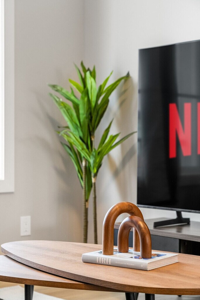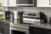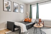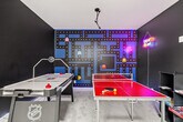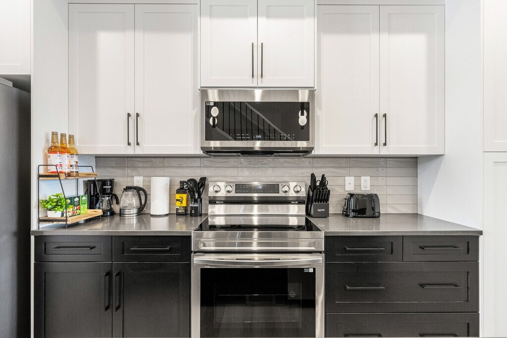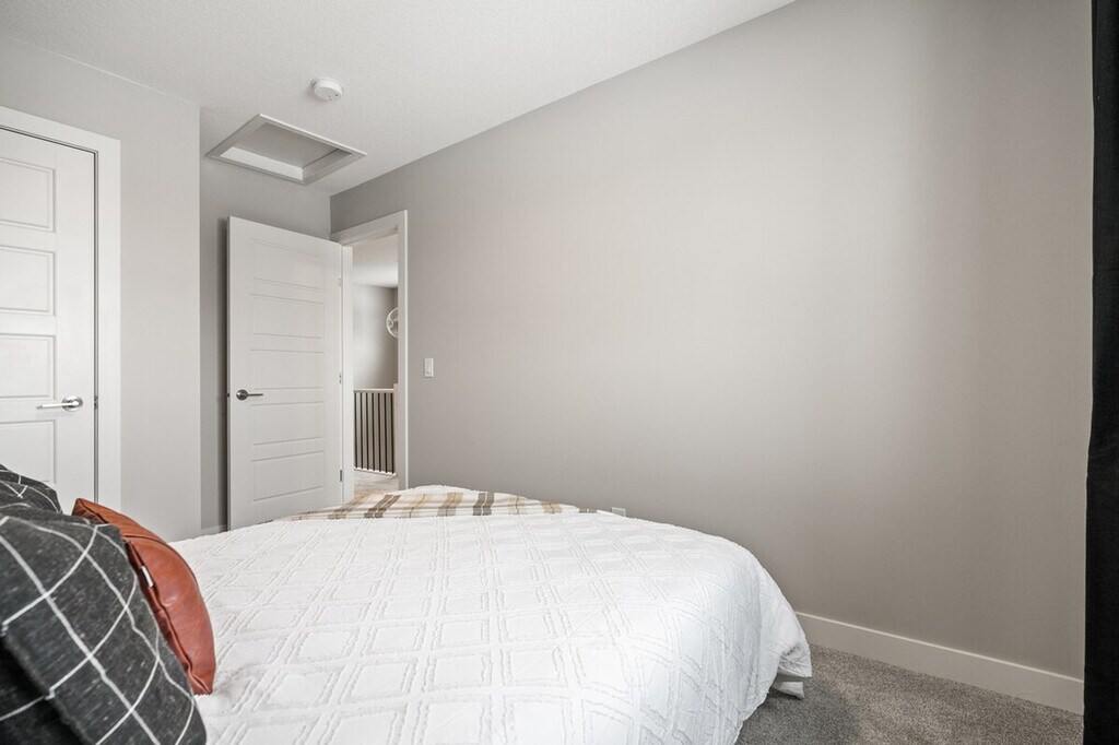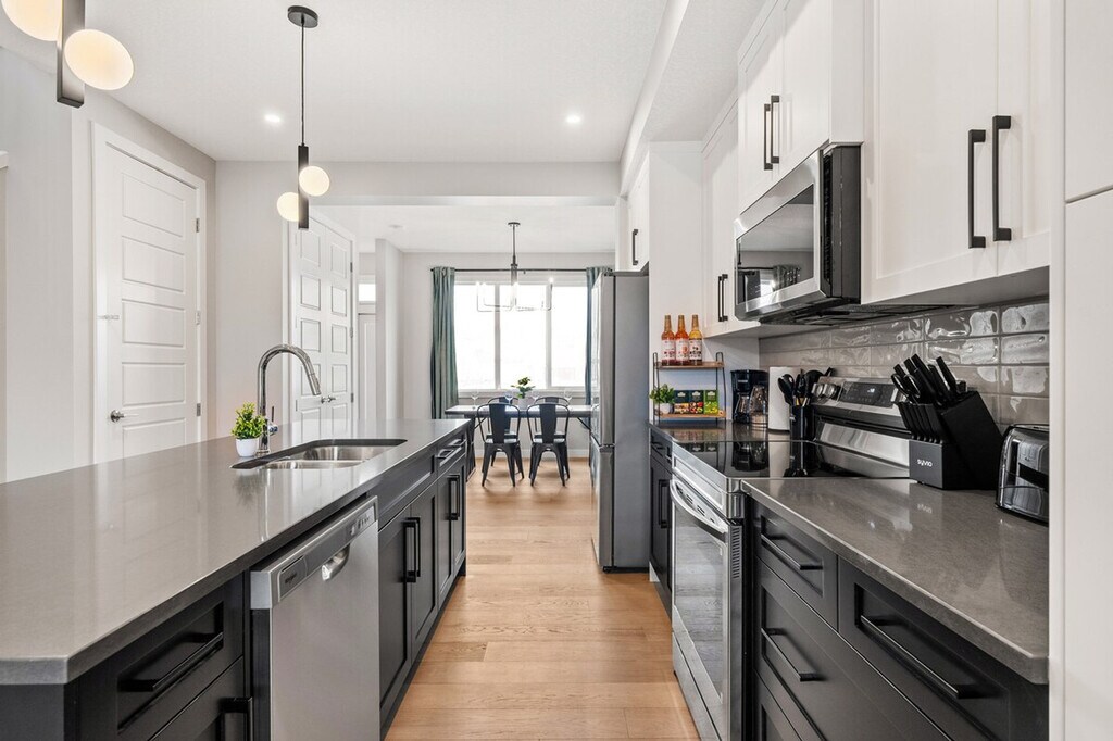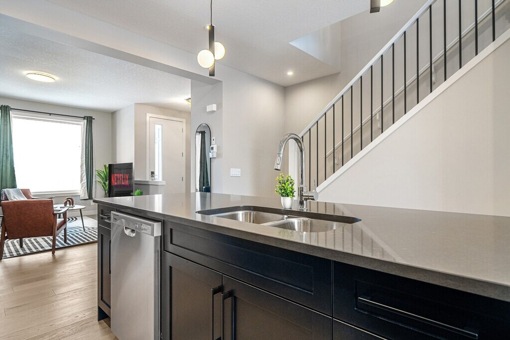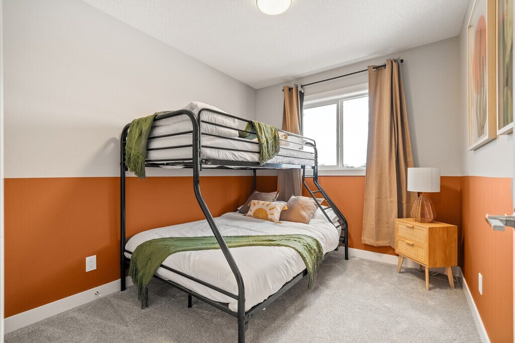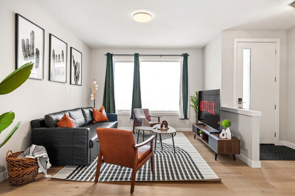 Welcome to your perfect Calgary getaway! This stylish 3-bedroom, 2.5-bathroom semi-detached home in South East Calgary is just 15 minutes from downtown. Feel at home in this cozy space with lots of natural light, featuring an oversized comfy couch and beautiful bay windows. The open-concept living space features modern decor, cozy furnishings, and a fully equipped kitchen with stainless steel appliances. The highlight of the home is the epic game room, complete with table tennis and air hockey, perfect for endless fun. The kitchen is fully equipped and stocked with everything you need, including a bar table seating 4 people, complementary coffee and tea, a spice rack, toddler/baby bowls/plates, cooking essentials, a microwave, stove, oven, refrigerator/freezer, kettle, toaster, glasses, silverware, and pots and pans. Quiet hours are from 10 PM to 8 AM. If you must smoke, please do so outside and dispose of cigarette butts responsibly. There is a camera positioned at the front entrance of the exterior and records image and sound 24/7 to ensure the safety of the property. Note that the area is in the final phase of construction and there may be occasional noise or activity during daytime hours. Late check-outs will be charged $100/hour. Any damages caused to furniture/linens may be subject to charges for replacements. A maximum of 2 pets are allowed, but they are not allowed on the furniture, should not be left unattended, and you must pick up pet waste. A dedicated work station is available for your convenience. Registration Number: BL287920 [SI]