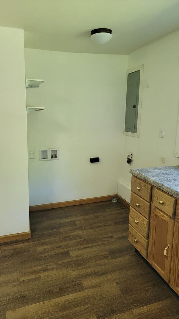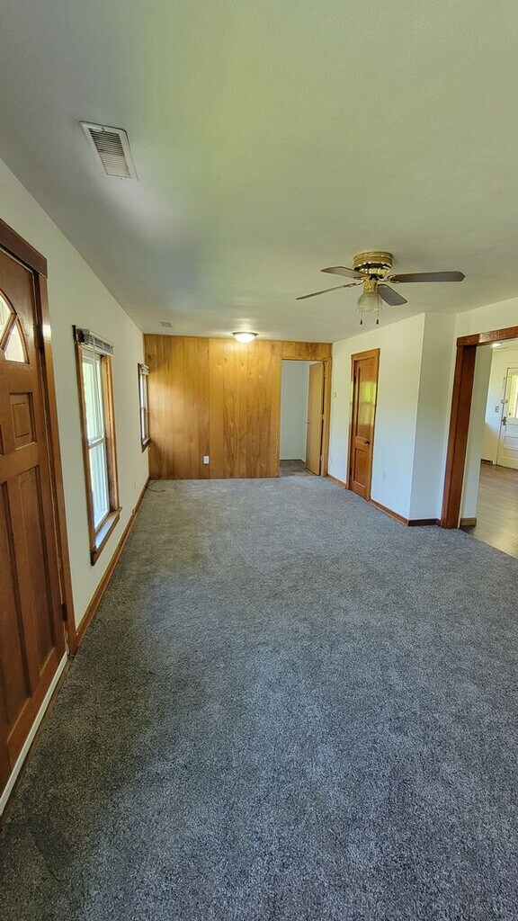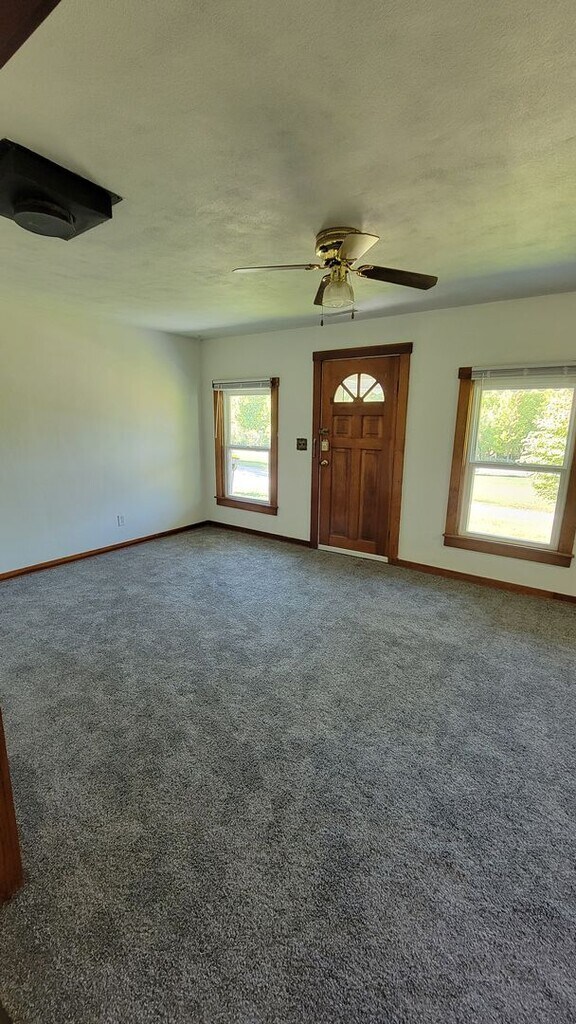 This cozy two-bedroom, one-bathroom home is ideally located in Ellettsville. Enjoy the large, lush and well maintained back yard that is positioned next to a neighboring pasture. You can enjoy this view from the comfort of a long covered back porch that stretches across the entire back of the house. This scenic view will give you the feeling of living in the country with the benefit of being close to downtown Ellettsville, Campbell's Park, McCormick's Creek State Park and Heritage trail that features historical markers about the area. The property's interior features a large carpeted living room, two sizable bedrooms, with plenty of closet space, a nicely sized, fully equipped kitchen with the added bonus of a washer and dryer hook-up positioned to one side of the kitchen, and a quaint dining area. One full bathroom, and a mud room. This home also has the benefit of a two vehicle carport. • Pet Policy - 1 pet max, 30 lbs., no aggressive breeds or a mixture of aggressive breeds. Speak with a Mackie Representative about Pet Deposits and Pet Fees • Not Section 8 approved For more information about the property, please contact a Mackie Properties agent at .