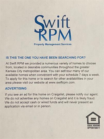Well maintained 3-bedroom 1.5-bathroom home in a quiet Baldwin City Ks neighborhood. Property paint has been updated and has newer flooring. Home includes kitchen appliances, and a 2-car detached garage. This property is located near Baldwin Middle School and High School. Please call Swift RPM at for more detail. This property allows self guided viewing without an appointment. Contact for details.