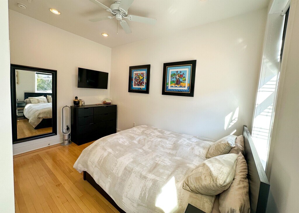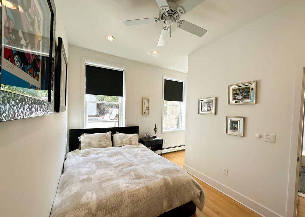 Recently renovated 718 square foot, 2 bedroom / 1 bathroom, pre-war, walk-up building at the corner of 3rd Street and Willow Ave, right off Church Square Park in Downtown Hoboken. Unit gets lots of natural light and ventilation through a total of 7 double-pane windows across 3 sides of the unit. This unit is on the 2nd floor (up 1 flight of stairs). It is well laid out, and features light hardwood floors, and high ceilings. The kitchen includes stainless steel, Frigidaire appliances including: a gas range and oven with a microwave range hood, a fridge and freezer, and a dishwasher. The kitchen also features a sink, leather granite countertops, subway tile, with a dining nook that can seat 2. The spacious bathroom features well lit, marble-topped vanity, a tub shower, and a stackable washer and dryer set as well. The living room has enough space for a large sectional, coffee table, additional seating and a ceiling fan. The primary bedroom is located in the rear and is large enough for a Queen Bed and has a large, walk-in closet, 2 windows and a can accommodate a desk or dresser as well. The secondary bedroom can accommodate up to a full-size bed and a free standing closet, and a dresser or desk as well, but is more ideally used as an office or guest room. Both bedrooms have ceiling fans, and are on opposite sides of the unit. Note: Floor plan is approximate and for reference only and these pictures reflect previous furnishings of this property. [Application Process] Prospective tenants will fill out an online Application with NTN and are responsible for the corresponding application fee per applicant. [Pets] Permitted, for exact details please ask Listing Agent [Utility/Feature] Tankless water heater; Baseboard heating (Google Nest Thermostat), Nest Yale Keyless Entry, Nest Protect Smoke/CO2) and Lutron Dimmable Lights [Nearby Public Transit] New Jersey Transit Bus to Port Authority Bus Terminal (~15 minutes depending on traffic) and to Hoboken PATH Terminal (~10 minutes depending on traffic) within a few steps from the building; Hoboken Transit Terminal (PATH Train / Ferry / Bus) is just over a half a mile away; 2nd Street Light Rail Station is just over a half a mile away. [Neighborhood Amenities] Pharmacy: Health Fair Pharmacy; Grocery: Acme; Parking: Midtown Garage; Entertainment / Nightlife: Washington Street (all within a half mile or so).
