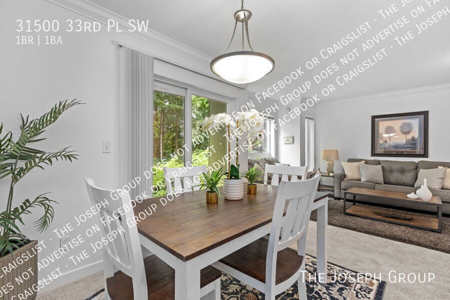 Discover this roomy one-bedroom, one-bath ground floor unit nestled in Federal Way. Step inside to find a spacious living room with a cozy dining area, and a kitchen equipped with stainless steel appliances and a breakfast bar. The primary bedroom offers ample space and includes a walk-in closet. Enjoy the convenience of a dedicated laundry closet with an in-unit washer and dryer. Community amenities abound, including a clubhouse, fitness center, tennis court, indoor hot tub, and outdoor pool. Close proximity to shopping and transit adds to the convenience. Step outside through the sliding glass door to the patio, where you can enjoy a tree-lined view! Home includes one reserved parking space. Flat monthly rate of $100 covers W/S/G. Experience comfort, convenience, and relaxation in this inviting residence Terms: 1st month rent plus security deposit, 6+ month lease term, available NOW! Pets case by case basis with additional costs. Required Residential Benefit Package $41 / month. We do business in accordance with the Fair Housing Act. *While every effort has been made to ensure the accuracy of the information provided, please note that it is not guaranteed and should be independently verified Assigned Covered Parking Washer/Dryer In Unit