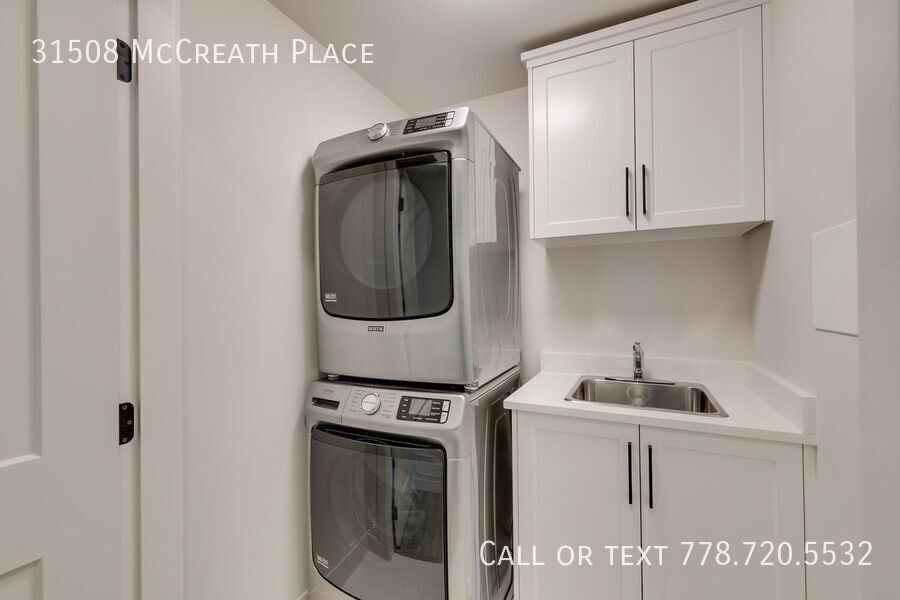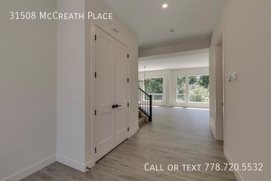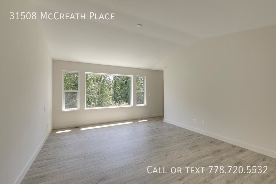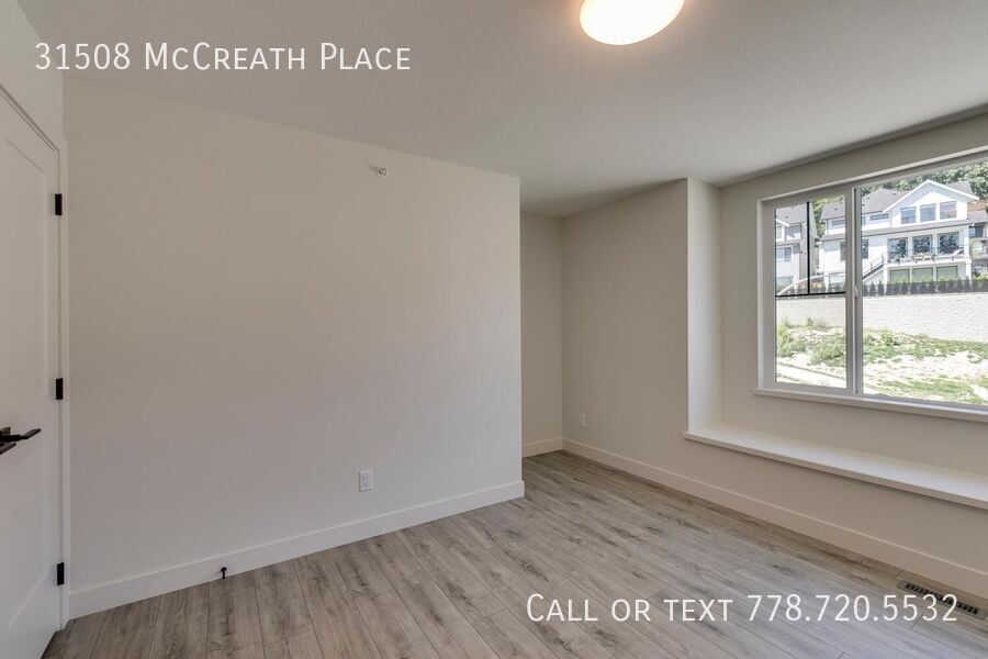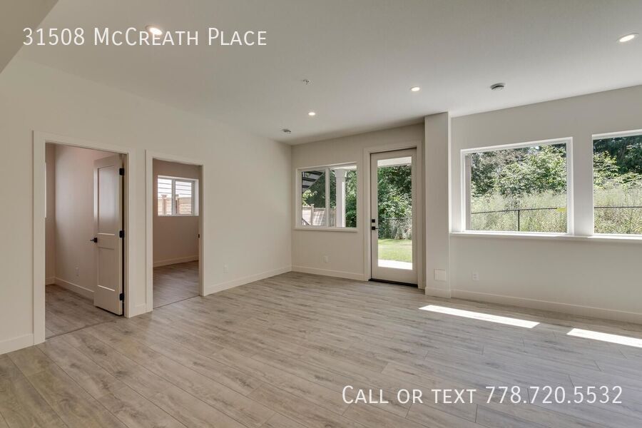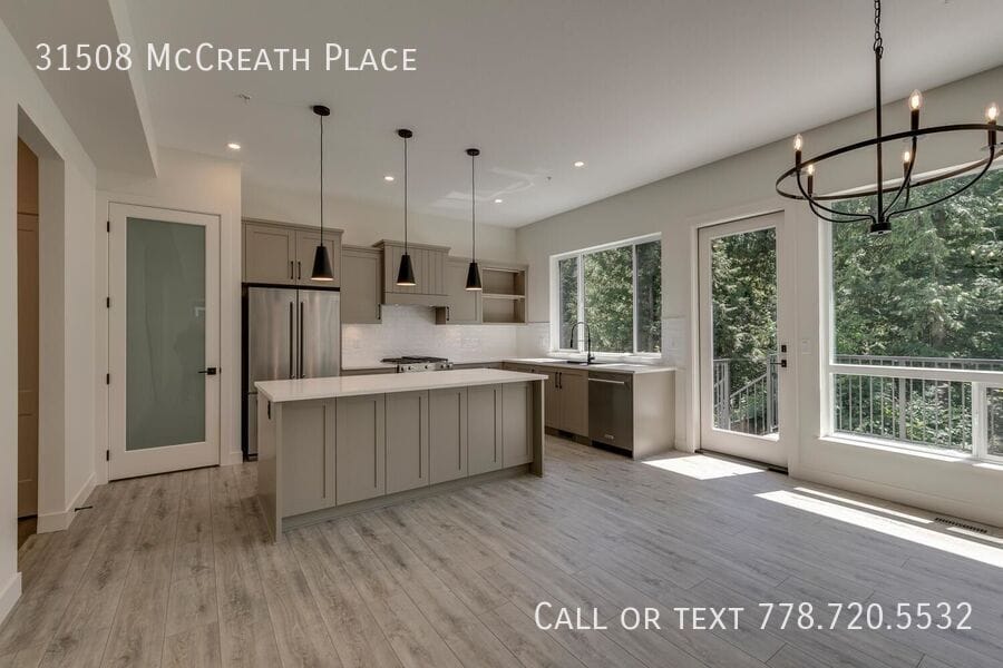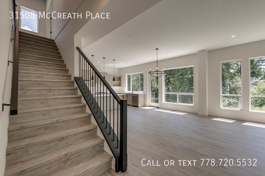 Move In Ready - Available Now! Step into luxury living at Nelson & Grove, where this beautifully crafted 6-bedroom, 4-bathroom home blends comfort, elegance, and function. Nestled at the end of a quiet cul-de-sac on a rare pie-shaped lot, it backs onto a tranquil greenbelt—offering privacy and peaceful views. Inside, vaulted ceilings, wide plank floors, quartz surfaces, and sleek tile define the space. The chef’s kitchen features stainless steel appliances, custom cabinetry, and a large quartz island. Expansive windows flood the home with natural light. Upstairs includes four bedrooms, including a serene primary suite with a spa-style 5-piece ensuite, walk-in shower, heated floors, and generous closet. The bright, walk-out basement offers two more bedrooms, a full bath, and a wet bar—perfect for entertaining! A small pet may be considered with a pet deposit. Rent $4200