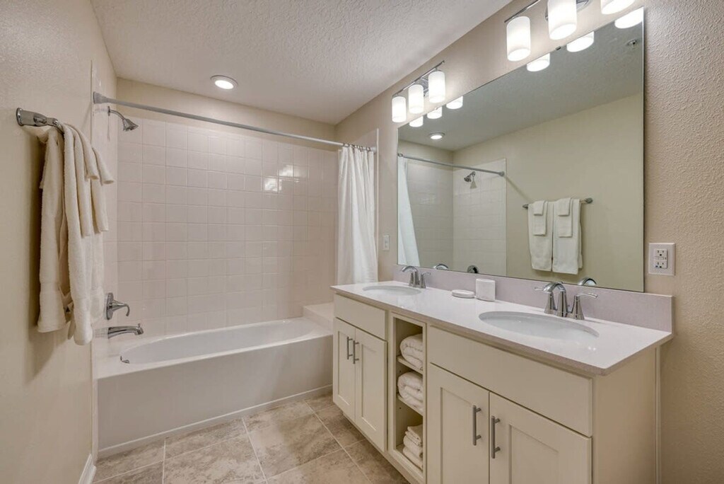 Experience the ideal blend of comfort and convenience in this welcoming 2-bedroom, 2-bathroom apartment. Unwind in the spacious living room seamlessly connected to the dining and kitchen areas. With space for up to five guests, it's perfect for families or groups. After a day of park adventures, relax on the balcony. Located in Storey Lake, just a quick 10-minute drive from Disney parks, this unbeatable location offers access to fantastic amenities like two clubhouses with pools, a lazy river, a fitness center, and mini-golf. Enjoy proximity to markets, restaurants, and stores, making it your perfect Orlando getaway. Step into this inviting 2-bedroom, 2-bathroom condo, meticulously designed for luxury and modern comfort. The spacious living room, featuring a sofa bed, seamlessly connects to the dining area and a fully equipped kitchen, forming a central haven for relaxation and dining. After an exciting day at the park, savor the breeze on the balcony. Discover the master luxury suite with a king bed, offering a private retreat. The Mickey-themed bedroom features two single beds and a well-appointed bathroom. For added convenience, a laundry room with a washer and dryer awaits, making wardrobe refreshes a breeze. Stay connected with complimentary Wi-Fi and make the most of the free parking. To ensure a seamless start, a welcome kit with essential bathroom and kitchen supplies awaits you. Nestled within Storey Lake Resort, this prime location places you only 10 minutes away from Orlando's major attractions and theme parks, including Walt Disney World, Universal Resort, and SeaWorld. The resort itself boasts an array of family-friendly amenities, from a tiki bar to an expansive resort-style pool with slides and a relaxing lazy river. Sports enthusiasts will appreciate the sports court and mini-golf, while those seeking adventure can enjoy kayaking. A well-equipped fitness center awaits those who want to stay active. Adjacent to the buildings, you'll discover an inviting pool, and within the resort, two clubhouses offer additional options for entertainment. Among these, a themed pirate pool is a highlight, sure to delight kids and families. Moreover, the resort's strategic location just off Osceola Parkway ensures easy access to an array of restaurants, shopping centers, and supermarkets, all reachable within a mere 5-minute drive. Quiet hours are between 22:00 and 8:00. [SI]