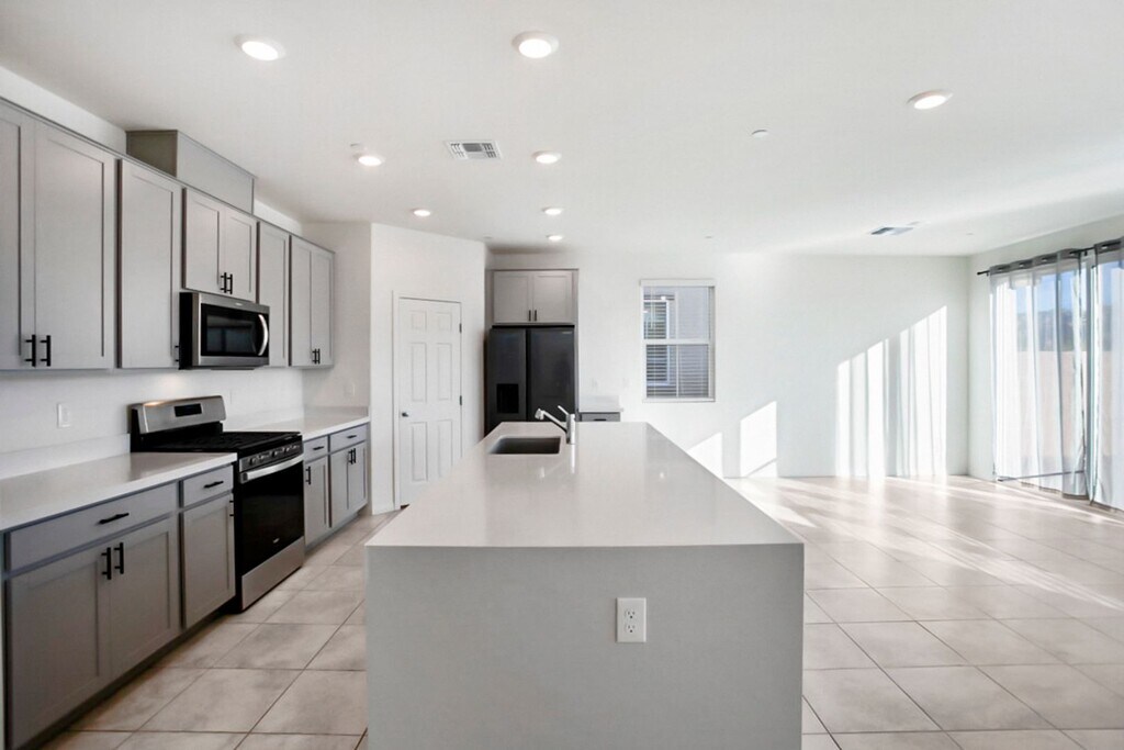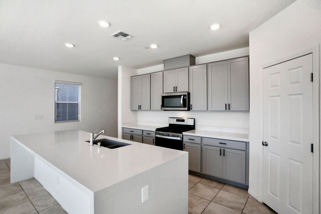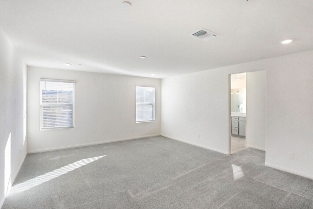 RENT INCLUDES TRASH AND RESIDENT BENEFIT PACKAGE! Nicely upgraded INSPIRADA BEAUTY WITH BED AND FULL BATH ON 1ST FLOOR; Tile throughout 1st floor, carpet 2nd; Bright, open, spacious great room, dining area; Island kitchen with breakfast bar, Quartz counters, walk in pantry, stainless steel appliances including microwave and refrigerator; Large loft; All guest bedrooms with ceiling lights; Full guest bathroom with double sink; Primary suite with mountain views, cable, walk in closet, ceiling light, double sink, relaxing soaking tub and separate shower; 2nd floor Laundry room with double door linen closet next to it; Tankless hot water and energy saving 3 zone HVAC system; Inspirada features community pools, parks, playgrounds, walking/jogging trails, tennis and basketball courts, BBQ areas with picnic tables, pet park and much more; Yard with pavers, synthetic grass and rock!