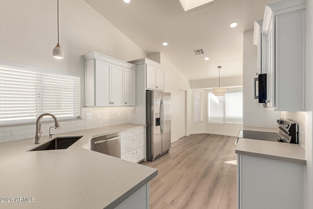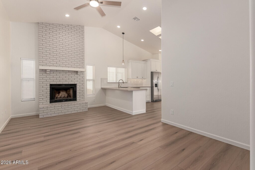 BEAUTIFULLY REMODELED rental home in Mountainside Ranch,ready to move in! Offering 4 beds,2 baths,2-car garage,and a low-care landscape w/artificial turf. The highly updated interior features a welcoming foyer,fresh neutral paint,new LVP flooring,chic light fixtures,tons of natural light,and vaulted ceilings. You'll love the seamlessly flowing living & dining room,and an inviting family room w/wood-burning fireplace! The renewed kitchen has skylights,SS appliances,a pantry,subway tile backsplash,a breakfast bar,staggered white cabinets w/under lighting,and a cozy nook w/bay window. Enter the main bedroom to find a walk-in closet and an upgraded ensuite w/dual sinks & outdoor access. Outback,you have a covered patio & synthetic lawn to relax or enjoy BBQ. Home,sweet home!