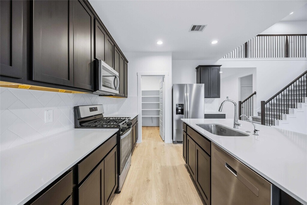 Well-maintained Texoma plan in a quiet cul-de-sac! This two-story home offers 4 bedrooms,2.5 baths,and a tandem 2-car garage across 2,452 sq. ft. of living space. Walk through the long entry to an open-concept living area with vaulted ceilings,flowing into the kitchen with white Silestone countertops,black cabinets,stainless steel appliances,and a large island. The downstairs primary suite features an oversized walk-in shower,large walk-in closet,and a second room that can serve as a home office. Upstairs includes 3 secondary bedrooms,1.5 baths,and a gameroom with an open-to-below design. Durable Nimbus Oak LVP flooring runs throughout the main living areas. Enjoy a covered patio,a very large backyard,and access to the resort-style community recreation center,featuring a pool,gym,and amenities. Located in an excellent school district,this home is move-in ready and perfect for modern family living. MLS# 35592243