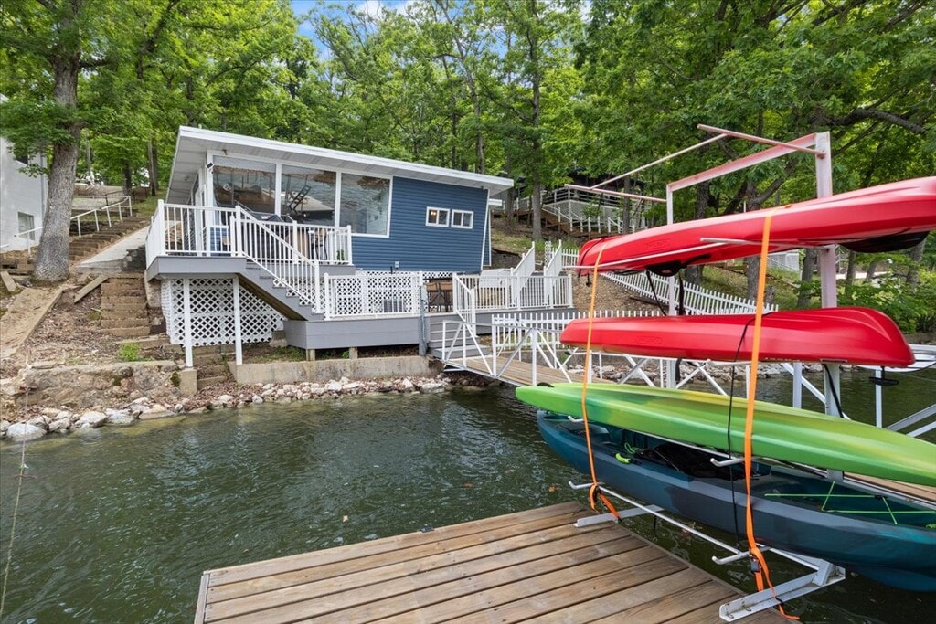 Available for 3 to 6 month midterm lease ONLY, this cozy waterfront home in Rocky Mount offers a peaceful lakeside retreat with all the essentials for extended stays. The single-level layout features two bedrooms, one bath, a fully equipped kitchen, and comfortable living spaces—perfect for professionals, small families, or anyone in need of a longer-term escape at the lake. Enjoy lake views from two-tier decks with bar seating and a grill, or head down to the private dock, complete with covered seating, a swing bench, smart TV, and swim platform. Three kayaks and a paddleboard are included for lake fun right outside your door. The Space Bedroom 1: 1 Queen Bed Bedroom 2: 1 Bunk Bed (Twin/Full) Kitchen: Fully equipped with microwave, electric stove, oven, refrigerator, toaster, and coffee maker. Indoor Living: Smart TV with streaming apps, ceiling fans, board games, and comfortable seating. Outdoor Living: Two-level decks with seating and gas grill. Dock: Private dock with covered seating, TV, swing bench, swim platform, and space for 1 boat + 2 jet skis. Parking: Space for 2 vehicles (close together) on-site. General: High-speed WiFi, washer and dryer, central A/C and heating, linens, towels, toiletries, trash bags, and paper products provided. Lease Terms Midterm lease only: 3–6 month maximum No smoking or vaping No parties permitted Neighborhood Located in a quiet cove, perfect for swimming and kayaking, with Village Marina and the Boat House nearby. A short drive leads to dining and entertainment favorites such as Neon Taco, Tap & Grill, DockKnockers, Lake Burger, Shady Gators, and Camden on the Lake. Getting Around Quick access to Hwy 54. Roads leading to the property include some gravel areas—suitable for cars but not ideal for motorcycles. Minimum Requirements To Rent with Salisbury Property Management Application fee is $25 Admin Fee $35 No prior evictions Minimum Credit Score of 600 Income must be 3 times the rent Good references from past landlords Pass a background check Must be a non-smoker No Pets Employment Verification All person's over the age of 18 that is not a dependent must pass these requirements. First, Last, and Deposit Required for all leases