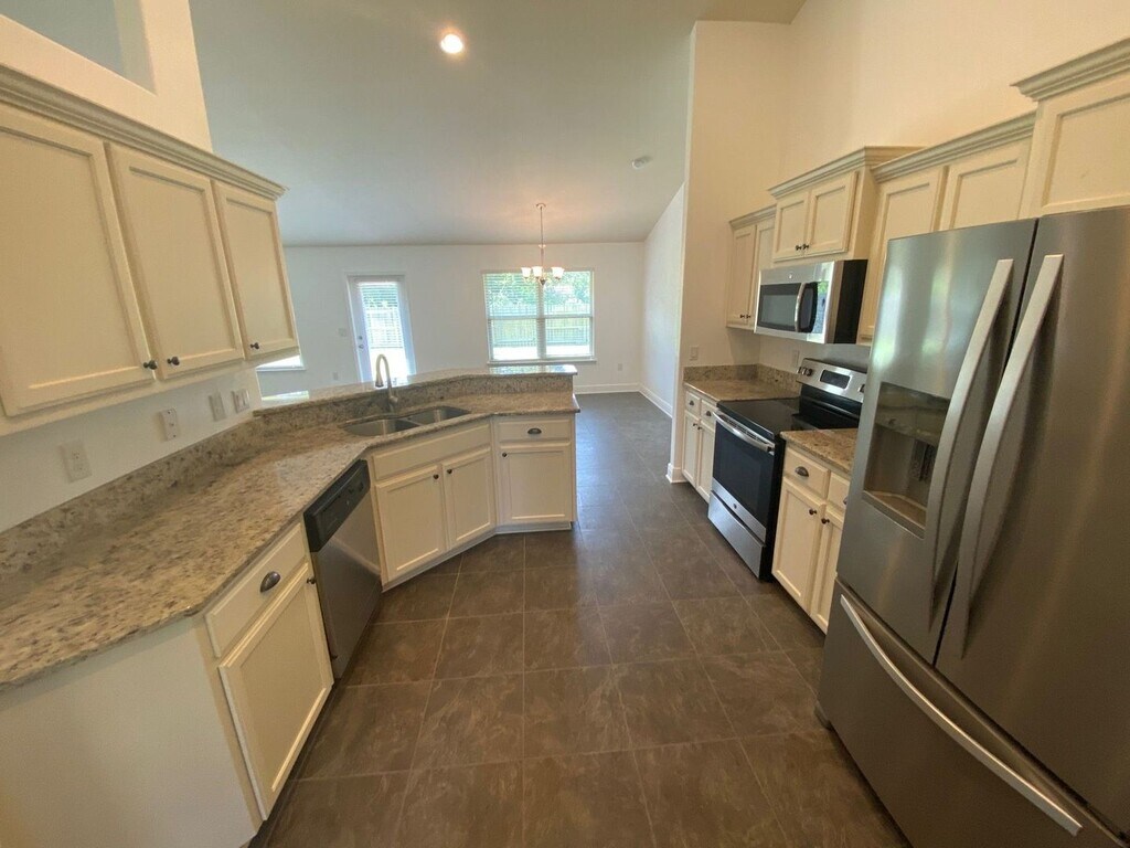 This 4 bedroom, 2 bath home offers a open floor plan with laminate flooring in the main living areas and tile in the dining room, kitchen, laundry room and bathrooms. The foyer has access to the living area or the kitchen. The living room has direct access to the backyard and features raised ceilings. Kitchen bar top overlooks the dining area and living room. Kitchen included granite counter tops and stainless steel appliances and large pantry space. Laundry room is located off the kitchen and has access to the 2 car garage. Master suite is off the dining area and includes ensuite with double sink vanity, garden tub, walk in shower, over-sized walk in closet and separate enclosed commode room. Guest bedrooms and bathroom are located on the other side of the home. Two of the bedrooms look to the large front porch. Fourth bedroom looks into the back yard. Guest bathroom has a shower/tub combo and large vanity. Enjoy family nights in the fenced in back yard which includes a large patio area for gatherings. Two car garage has access to the side yard and the laundry room. Lawn care included with rental payments. Pets allowed on a pre-approved basis is all pet fees paid, weight limit 30 lbs, limit 1. Owner/Manager reserves the right to deny any pet(s) at any time. Pet fees range from $275-375 per pet, this is a one time nonrefundable pet fee. There is also a annual pet inspection fee of $150. All animals are screened by a 3rd party screening company to be verified as a service animal. Verified service animals have no pet fees due. If unverified, pet fees will be required. School zones - Gulf Breeze Elementary, Gulf Breeze Middle, Gulf Breeze High School Tenant Benefit Package fee of $39/month is required for all tenants. See "Tenant Benefit Package" under Tenant drop down for more information.