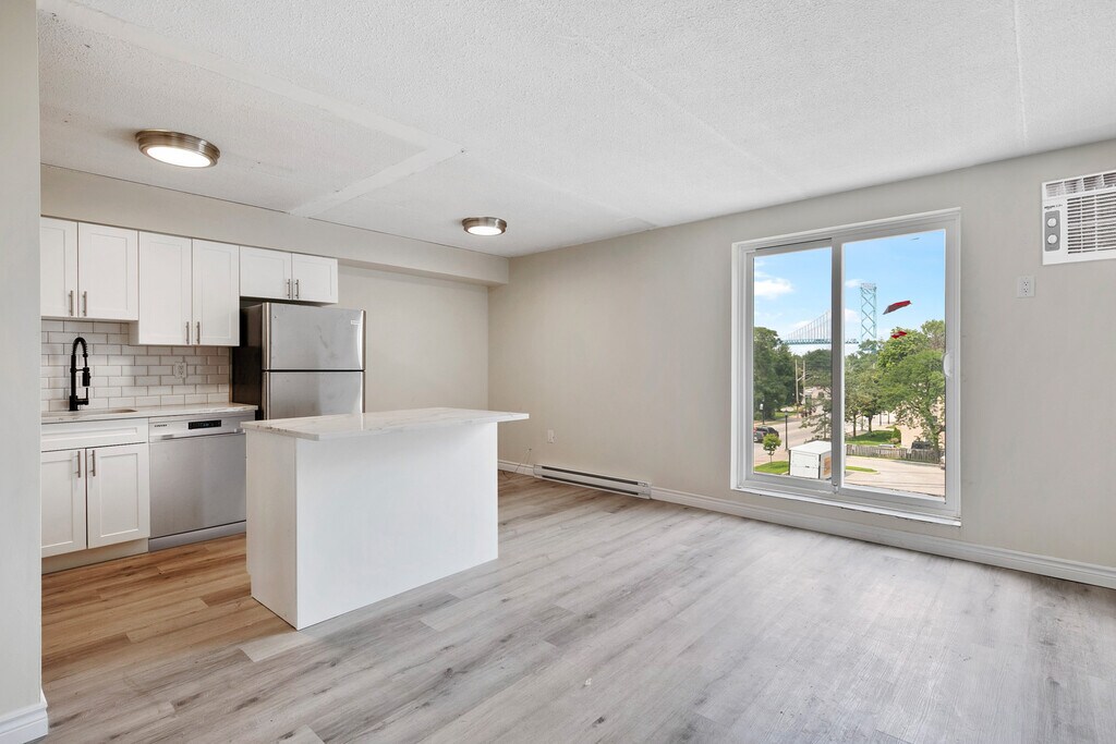 Discover ‘The Brockwich’ building and experience Sandwich Town’s only premier boutique living. Stunning renovated units with waterfront views of Detroit and the Ambassador Bridge, located in the heart of the historic Sandwich Town district, is sure to leave you impressed. This is a must see building that has been fully renovated from top to bottom with a completely rebuilt interior and exterior. The Brockwich offers spacious open concept living with premier finishes, each unit includes; - Modern open concept design providing amazing natural light! - Gorgeous modern cabinetry with brand new light fixtures and blinds. - Quartz countertops. • Two Bedroom units feature a kitchen island with additional storage and dining space. • One Bedroom units feature a pony wall with countertop for additional dining space. - Brand new stainless steel appliances, including dishwashers! - In-suite laundry featuring a dual combo appliance in every unit! - Beautiful modern bathroom with light marble tiling throughout, stunning modern square waterfall shower-head, modern vanity and mirror. - Newly renovated balcony that is perfect for enjoying the city summer nights. - Designated parking. • One Bedroom & Two Bedroom units each feature a designated parking spot. - Secured storage. • Secured, on-site private storage. The Brockwich features state of the art building features: - 24 Hour Emergency Service - Building Security - Video Intercom System - Controlled Entry - Beautifully Landscaped Grounds - Private On-Site Parking This stunning rental is centrally located in Olde & Historic Sandwich Town, close to various pubs; Dominion House, Sandwich Brewing Co., The Barrel House, and more, bus routes, within walking distance to the University of Windsor, Windsor’s downtown core, the waterfront and so much more!