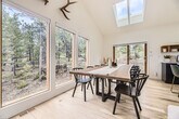 Find peace, privacy, and comfort at Pine Cabin, a fully furnished mountain home located on a quiet cul-de-sac in Pine Junction. This recently renovated retreat offers the perfect balance of rustic charm and modern convenience and is ideal for remote professionals, traveling nurses, families between homes, or anyone seeking a long-term escape in Colorado’s foothills. Sunlight fills the home through large windows and skylights. Feel at home in this mountain getaway. Thoughtfully designed for longer stays, this home includes a living area with a gas fireplace, comfortable seating, a large flatscreen TV, and beautiful forest views. The kitchen is fully equipped with rift-sawn white oak cabinets, quartz countertops, an induction stove, a dishwasher, and skylights. Enjoy the large dining table with seating for eight, perfect for family dinners or entertaining. The basement features 9-foot ceilings, two bedrooms, a remodeled bathroom, a shuffleboard table, and walkout access to the hot tub and porch swing. A full-size washer and dryer are available, plus a mudroom with easy deck and hot tub access. Enjoy multiple outdoor areas surrounded by nature. The main deck overlooks the forest and yard, ideal for morning coffee or evening sunsets. The upper back deck has a cozy sitting area for relaxing with a blanket and warm drink. The lower-level deck includes a porch swing and private hot tub, perfect for stargazing on cool winter nights. The one-acre lot features tall pines, open yard space, and a quiet walking path. Two-car garage and additional driveway parking are available. This home offers the privacy of a mountain getaway with convenient access to nearby towns and outdoor recreation. Located just off Highway 285, you can easily reach Denver or mountain destinations while enjoying the peace of a rural setting. Nearby attractions include Staunton State Park (5 minutes), great for hiking, biking, snowshoeing, and wildlife viewing year-round, Pine Valley Ranch Park (15 minutes), perfect for fishing, riverside walks, and picnics, Conifer (10 minutes), with local restaurants, craft breweries, and shops, Bailey (15 minutes), with small-town charm, wineries, and local markets, and Breckenridge Ski Resort (just over 1 hour), with world-class skiing and snowboarding day trips. A 30-night minimum stay is required. No pets are permitted. No parties or events are allowed in this quiet residential neighborhood. Security cameras are located outside only: a Ring doorbell at the front entrance and one driveway camera. [SI]