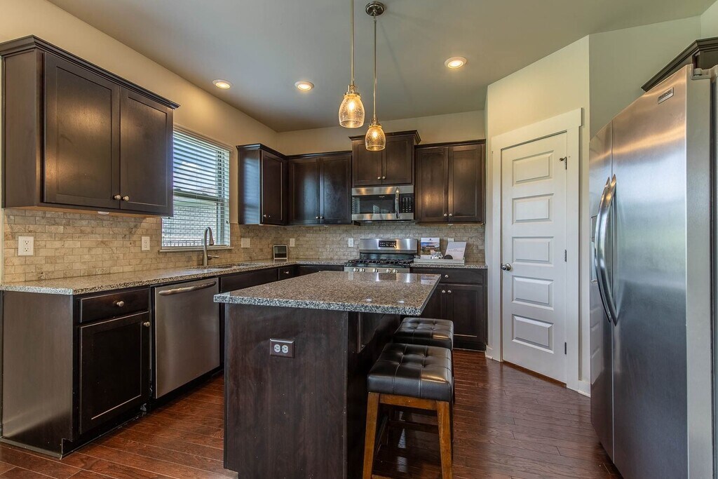Freshly painted and designed for modern living, this 4BR/2.5BA home offers an inviting open-concept main level that seamlessly connects the family room, flex space, dining area, and kitchen. The kitchen features granite countertops, dark wood cabinetry, stainless steel appliances, and a gas stove—perfect for everyday cooking or entertaining. Upstairs, all bedrooms are tucked away for privacy, along with a walk-in laundry room and a versatile loft that can serve as an office, playroom, or media center. The spacious primary suite includes a dual-sink bath, separate shower, and walk-in closet, while three additional bedrooms share a full bath with double vanities. Outdoor living is enhanced by a generous backyard, community pool, park, and walking trails. Located just minutes from MTSU, Downtown Murfreesboro, and The Avenue for shopping and dining, with nearby recreation at Cannonsburgh Village, Barfield Crescent Park, and the Stones River Greenway. Easy access to I-24 makes commuting to Nashville simple, while zoned schools and nearby conveniences make this home a fantastic choice for today’s lifestyle.