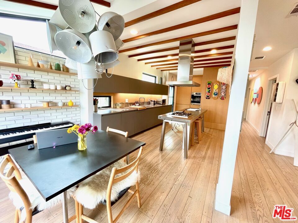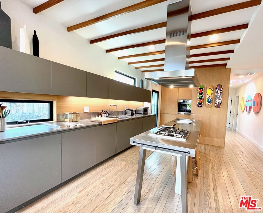 Form and function marry beautifully in this reimagined Spanish with a modern touch in the Helms Bakery neighborhood. An AIA award winning designer has created a masterpiece designed for an owner/user. You sense the quality of workmanship and materials the moment you enter the great room with indoor / outdoor flow and experience the sleek kitchen with island by Bulthaup and Miele appliances including a wok burner and a teppanyaki. Dine inside or open the french doors for outdoor entertaining with a gas fire pit. The living room features beamed ceilings maintaining the 1936 character with a stunning decorative fireplace. The three bedroom, two bathroom home's drama culminates at the primary suite with vaulted ceiling, an inviting private patio, 2 huge walk-in closets, with soaking tub and bidet toilet. With a separate two car garage this gated smart" property delivers all you have been looking for in your next home across from Helms Bakery Complex, Apple, blocks from Platform, Ivy Metro Station, Downtown Culver City and bike paths. Find out why this vibrant neighborhood is THE place to live with great dining, shopping, jobs and recreation - right between downtown and the ocean." MLS# 26660169