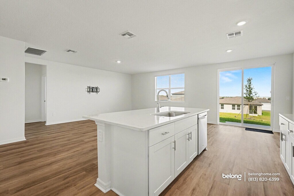 Clean lines, open sightlines, and a modern layout define this 4-bedroom, 3-bath space designed for everyday functionality. Wood-style flooring runs throughout the main living areas, paired with recessed lighting and a neutral palette that keeps the look streamlined and contemporary. The main living and dining areas connect easily, giving you flexibility for relaxing, hosting, or setting up a work-from-home zone. Large windows bring in steady natural light, while the open configuration allows furniture to be arranged without visual clutter. In the kitchen, white cabinetry, generous counter space, and a central island create a crisp, efficient workspace. Stainless steel appliances include a refrigerator, range, oven, microwave, and dishwasher, keeping cooking and cleanup straightforward. A dedicated laundry room adds practical separation for daily routines. Set in Brooksville, this home sits near everyday essentials and outdoor recreation. Grocery options like Publix and Winn-Dixie are a short drive away, while shopping and dining can be found along Cortez Boulevard. Nearby parks such as Chinsegut Hill Preserve and Weeki Wachee Springs State Park offer trails, kayaking, and open green space. Easy access to US-41 and the Suncoast Parkway supports commutes throughout Hernando County and beyond. *Our homes come as-is with all essentials in working order. Want upgrades? Request it through the Belong app, and our trusted pros will take care of the rest!