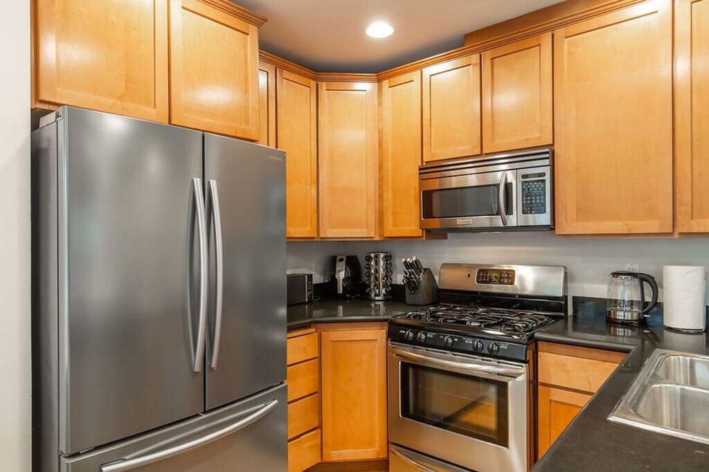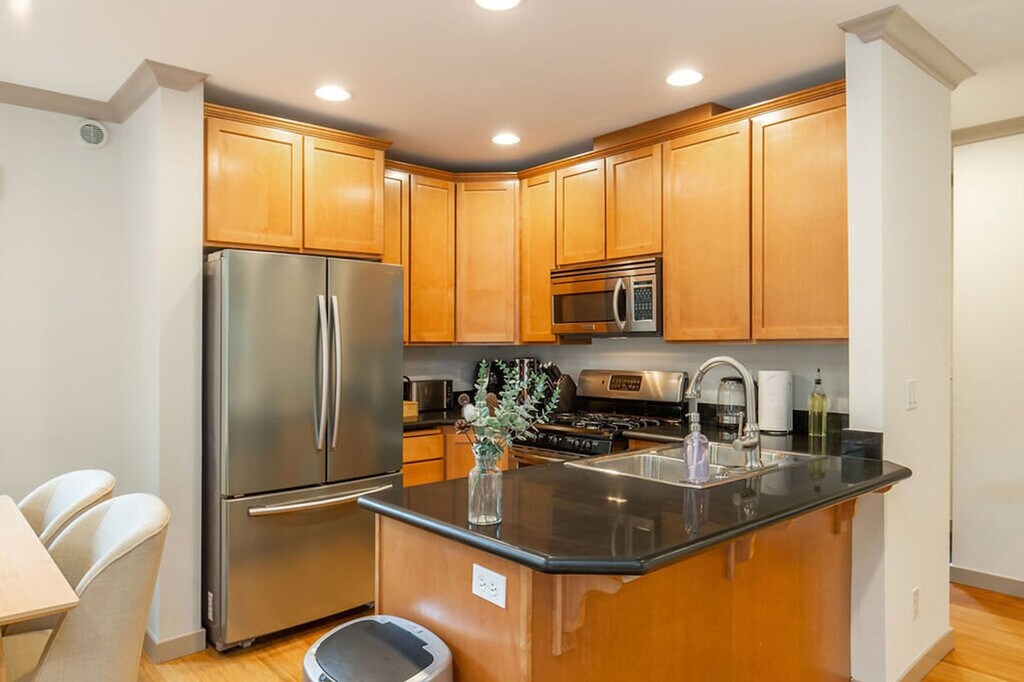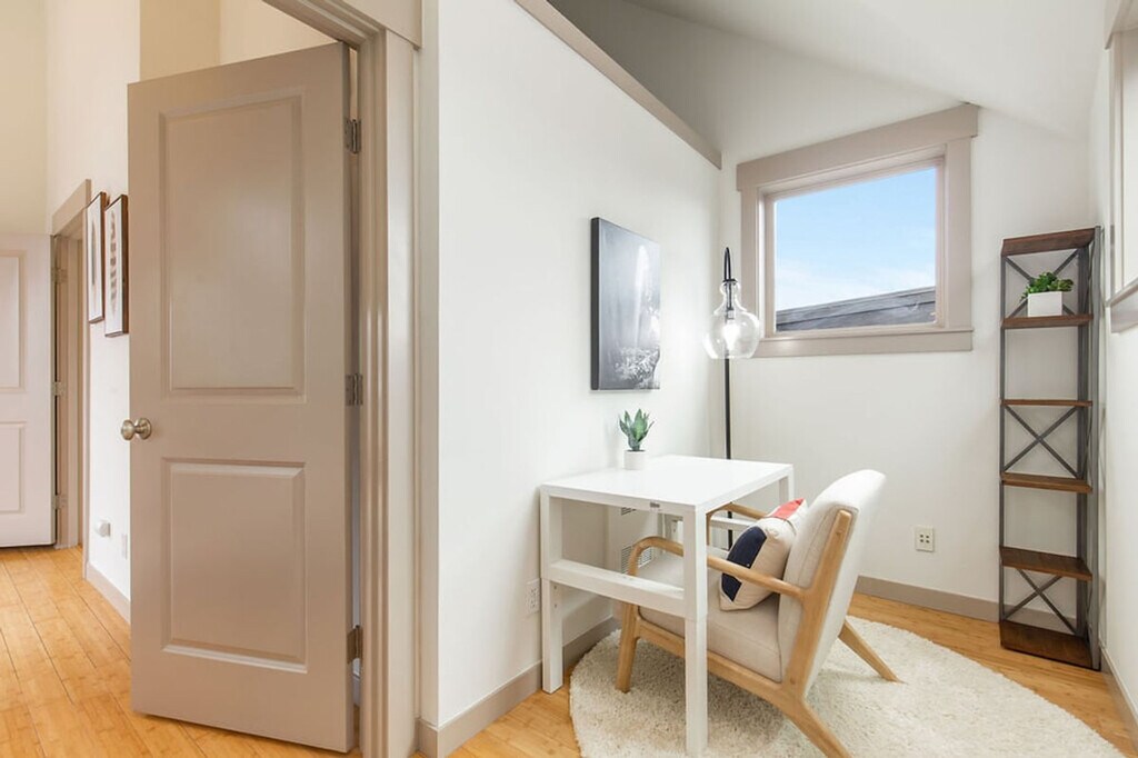 Feel at home in this stylish 3-bedroom townhome in the city. This spacious 1560 sqft home is spread across three stories and requires navigating a few steps to enter. This home features a sunlit dining area, a private backyard oasis, and an upper level with vaulted ceilings and a deck. The kitchen is stocked with high-end appliances, cookware, silverware, servingware, spices, Keurig coffee, and tea. Enjoy high-quality beds, mattresses, pillows, and linens, a smart TV for streaming, and an on-site washer and dryer. Dedicated parking for two cars, including a secured garage, is available. Located in Seattle's Central District, this home is within walking distance of coffee shops, restaurants, and grocery stores. The Central District is a culturally rich neighborhood known for its diverse population, vibrant community, independently owned cafes, restaurants, shops, cultural events, and street art. It offers an easy commute to most areas of the city and is a great launching point for your Seattle trip. With a high walk score, many dining, shopping, and entertainment options are within walking distance. Many bus stops are less than a 5-minute walk away, and ride-share services are highly recommended. This is not a pet-friendly home, and unauthorized pets will incur a $500 fine. Parties and events are strictly prohibited, quiet hours are between 10 pm and 8 am, smoking or vaping of any kind is not allowed anywhere on the property, including outdoor areas, digital piracy is prohibited, and shoes are not allowed in the home. A $500 fine will be charged per violation. The hot tub in the backyard is not in service. This townhome is not handicap-friendly, and guests must be comfortable with stairs as there are multiple stories. A Ring Camera is located by the front door. Includes office space on the upper level. Registration Number: STR-OPLI-22-001197 [GO]