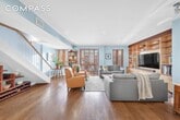 Perched on a quiet, tree-lined block in the heart of Park Slope, this exceptional 2500+ sq ft five-bedroom, four-bathroom duplex residence at 316 2nd Street offers a rare blend of space, light, and prime location. Accessed via a private keyed elevator that opens directly into the home, #4F unfolds in a bright, loft-like layout with four outdoor spaces. The main level features an expansive, open-concept living and dining area designed for both everyday comfort and effortless entertaining. Bathed in natural light from oversized windows and French doors that lead to the living room's private balcony, overlooking the building’s exclusive landscaped courtyard. This elegant space flows seamlessly into a stylish eat-in kitchen outfitted with granite countertops, stainless steel appliances, a functional center island, and abundant custom cabinetry. The sleeping quarters are distributed across two levels to maximize privacy and versatility. The primary suite is a true sanctuary, large enough for a king-sized bed and features a private balcony, a walk-in closet, and an en-suite bathroom with soaking tub. A second bedroom and additional full bath are conveniently located on this floor. Upstairs, the second level boasts built-in shelving and three more generously proportioned bedrooms, including a large suite with its own en-suite bath, all of which easily accommodate queen-sized beds and offer excellent storage. This floor also provides access to the crowning jewel of the home: a massive 13' x 23' private terrace, delivering breathtaking, panoramic vistas of the Manhattan skyline and Statue of Liberty—perfect for gardening or lounging under the stars. The apartment also features hardwood floors, full-sized in-unit washer and vented dryer, owner-controlled central heating and air conditioning, internet wiring in every room, ready for Verizon Fios or Spectrum. City View Gardens is a boutique, pet-friendly with a beautifully landscaped residents’ courtyard, an on-site gym available for a one-time membership fee, a video intercom system, and an on-site superintendent. Just one block from Fifth Avenue, you are surrounded by Park Slope’s celebrated restaurants, cafés, and boutiques, as well as JJ Byrne Park with its playground and the historic Old Stone House. Washington Park, with its dog run, athletic fields, and community amenities, is moments away, as is the beloved Sunday Farmers Market at MS 51. Whole Foods on Third Avenue, Gotham Gymnastics, Goldfish Swim School, School of Rock, and the Maurice Sendak School are all nearby, with a continually growing list of neighborhood conveniences close at hand. Commuting is effortless with access to the F, G, N, and R trains nearby, along with the 2 and 3 lines and the Atlantic Terminal and Barclays Center transportation hub, providing easy access to Prospect Park, the Brooklyn Museum, the Botanical Gardens, and beyond.