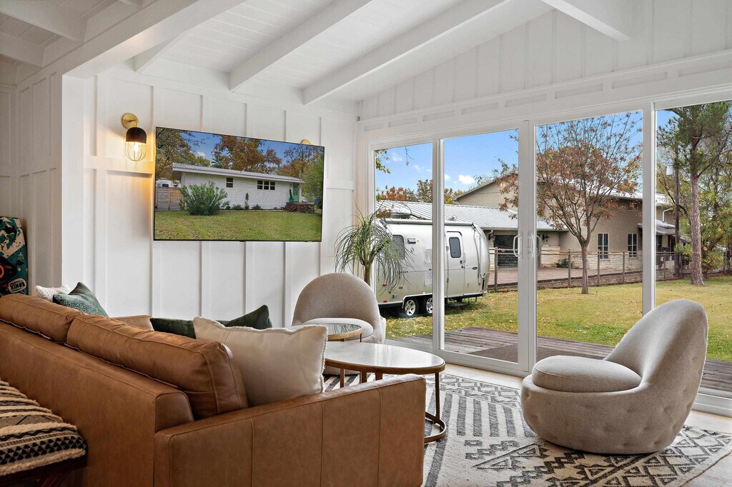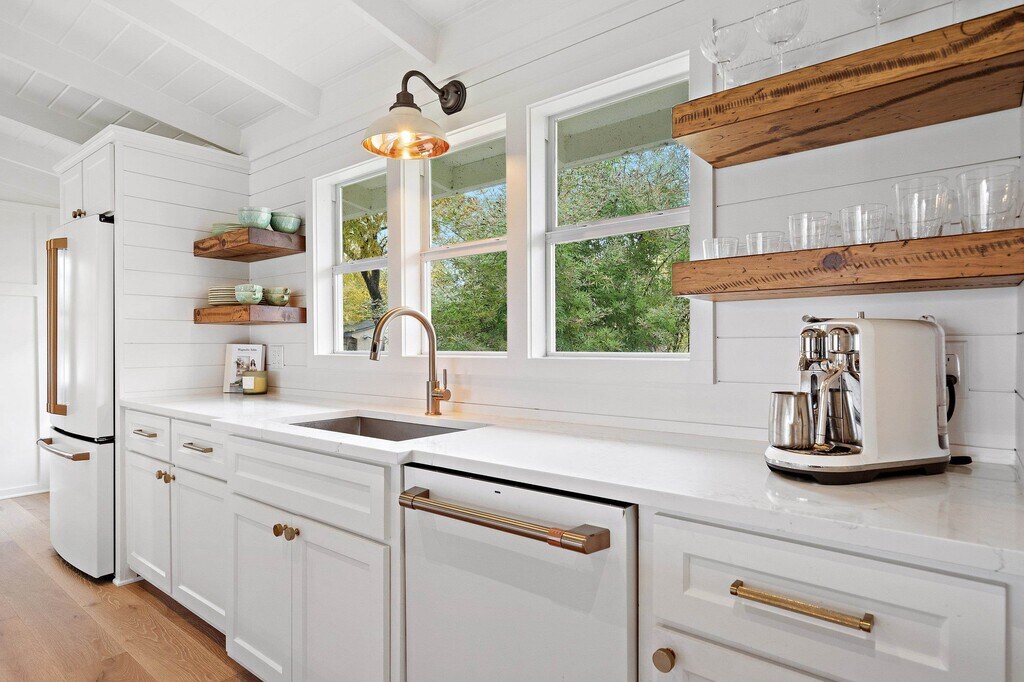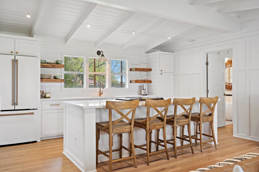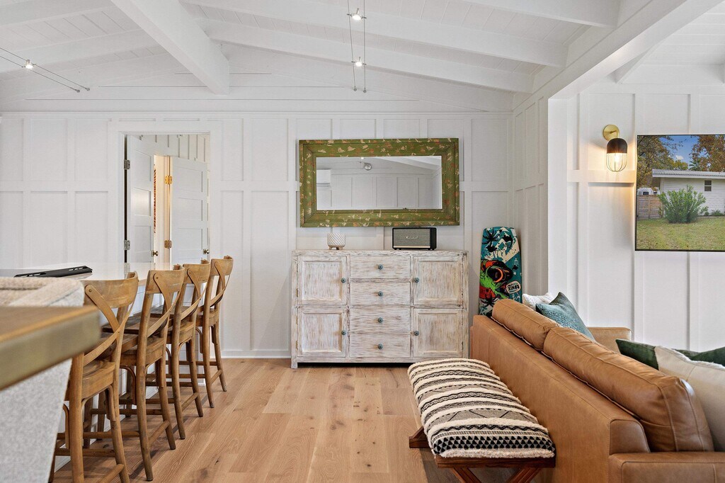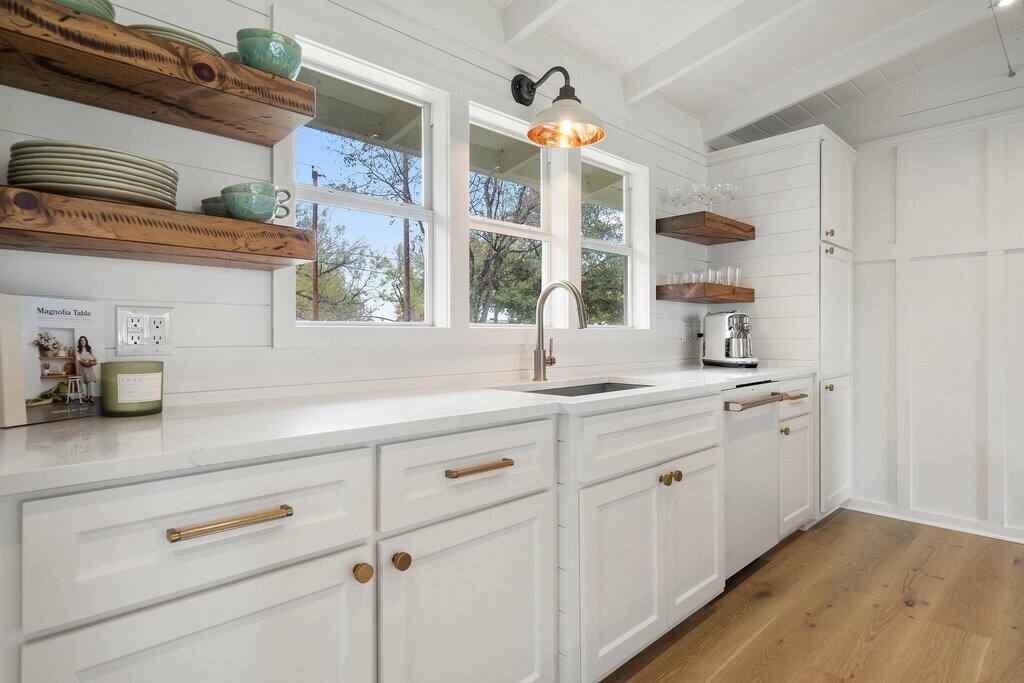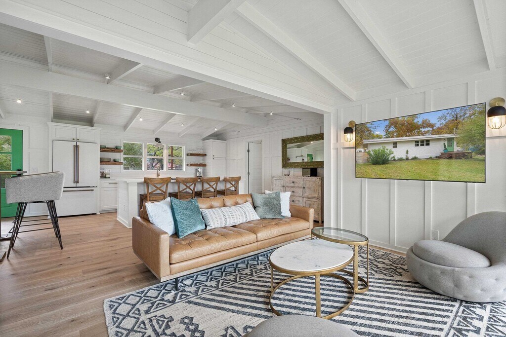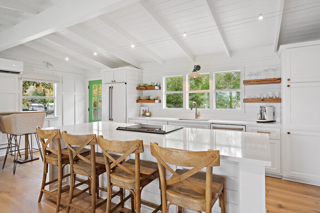 Nestled on the tranquil shores of Lake LBJ,this magnificent waterfront cottage offers a breathtaking blend of vintage charm and modern elegance. Originally built in 1961 and fully restored in 2021,this one-of-a-kind property boasts a comprehensive down-to-the-studs renovation,ensuring almost new conditions in every aspect. With an impressive 77 feet of peaceful water frontage,this breathtaking retreat offers a private boat dock with lift,a cozy one-bedroom layout with additional built-in bunk bed area,and a breathtaking mid-century modern boho-style interior,fully furnished by Four Hands Home. Soak in the serene lake views from the spacious open floor plan,featuring vaulted ceilings,board and batt walls,and shiplap ceilings. Enjoy cooking in the stunning custom kitchen,boasting GE Cafe matte white appliances with aged brass handles,quartz counters,and White Oak hardwood floors. Savor your meals in the comfortable dining area,or relax in the spacious living room,both with sliding glass doors to the lake views. Take in the fresh air on the large covered back patio with misting fan,Saltillo floors,and a fireplace table,perfect for cool winter evenings. A built-in washer/dryer closet with stackable washer/dryer,a powder room with exterior access,and an outdoor shower make this cottage the ultimate in lakefront living. Situated on an enormous lot with a large grassy lawn surrounded by towering trees,a private boat dock with lift and large storage shed near the water,this waterfront gem al Based on information submitted to the MLS GRID as of [see last changed date above]. All data is obtained from various sources and may not have been verified by broker or MLS GRID. Supplied Open House Information is subject to change without notice. All information should be independently reviewed and verified for accuracy. Properties may or may not be listed by the office/agent presenting the information. Some IDX listings have been excluded from this website. Prices displayed on all Sold listings are the Last Known Listing Price and may not be the actual selling price.