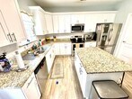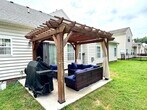 Welcome Home!! Beautifully situated in the Northern part of Suffolk, this stunning home offers an open floor plan with the kitchen and dining area seamlessly flowing into the spacious living room. The custom kitchen features granite countertops, stainless steel appliances, a generous island, and a large pantry. The living room boasts vaulted ceilings and a cozy gas fireplace. The first-floor primary suite includes a walk-in closet and a luxurious private bath with a double vanity, garden tub, separate tiled shower, and water closet. Upstairs, you’ll find three large bedrooms and a full bath. Enjoy the partially fenced yard with a patio and pergola—perfect for outdoor gatherings. Additional features include a two-car garage, a large driveway, and washer/dryer provided in “as-is” condition. Pets are negotiable with a $350 pet fee plus $50 monthly pet rent (no aggressive breeds). No smoking inside the home or garage.