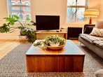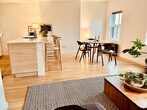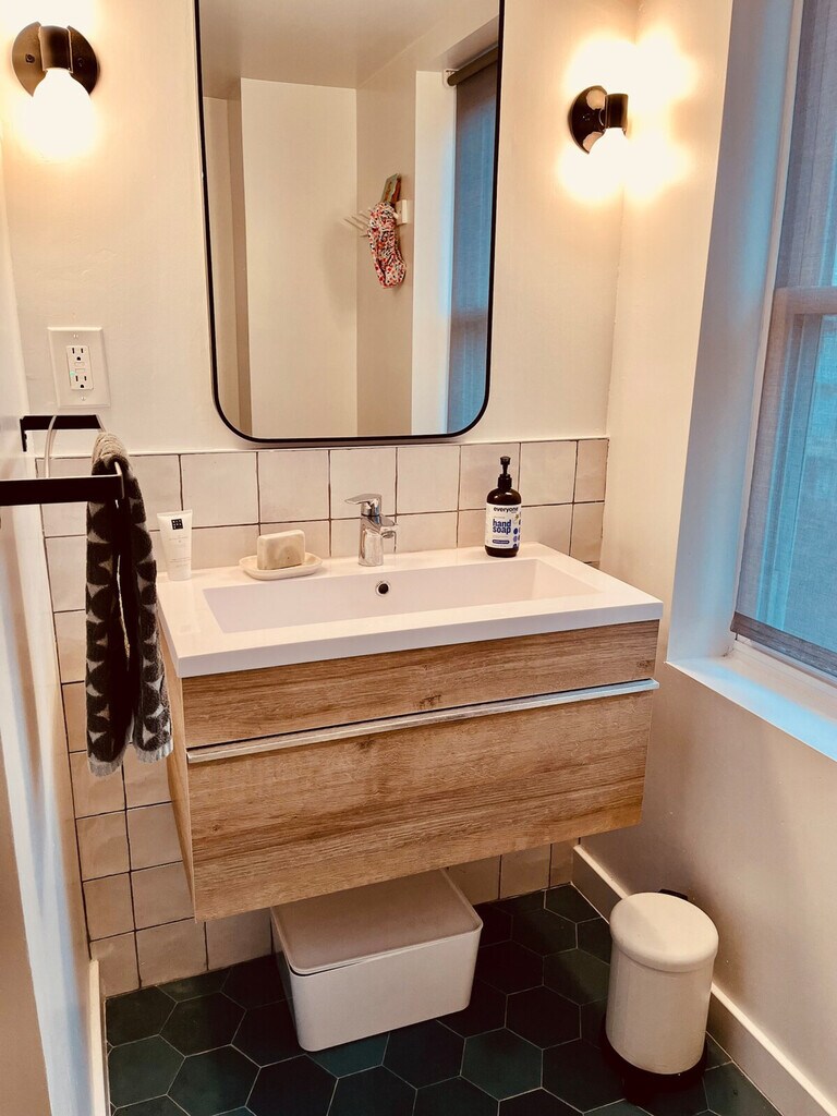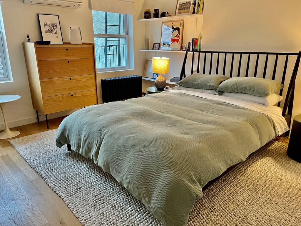 Discover the charm of Brooklyn with this beautifully renovated 1-bedroom apartment located on the top floor of a brownstone. Enjoy the spaciousness of a large fully equipped kitchen complete with a breakfast bar and dining area that doubles as a workspace. The apartment is super sunny, featuring three large windows that offer stunning views of the Brooklyn and Manhattan skyline. The bedroom is generously sized with a double closet and an en-suite bathroom boasting a huge shower. Overlooking neighborhood backyards, the bedroom is flooded with light from south-facing windows and the apartment features central air throughout. Electricity is included up to $100 per month, with additional costs potentially incurred when using air conditioning during the summer months. Guests will be billed for any usage exceeding $100 per month. [SI]