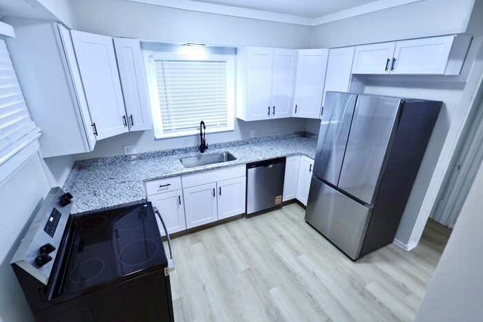 Beautifully renovated and move-in ready, this bright home offers updated finishes, smart-home features, and self-guided tour access for a convenient leasing experience. Inside, the home feels fresh and functional with bright living spaces, updated flooring, and a clean modern layout throughout. The kitchen stands out with white cabinetry, modern countertops, and a spacious layout that flows well into the main living area, giving the home an open and practical feel for everyday living. Well-sized bedrooms and an updated bathroom add comfort and usability, while the dedicated laundry area adds extra convenience rarely found in homes of this size. Outside, the property offers easy access and a practical setup, while smart-home features help create a more modern and streamlined rental experience. Pet-friendly and thoughtfully updated throughout, this home offers a strong combination of style, functionality, and everyday convenience. This property allows self guided viewing without an appointment. Contact for details.