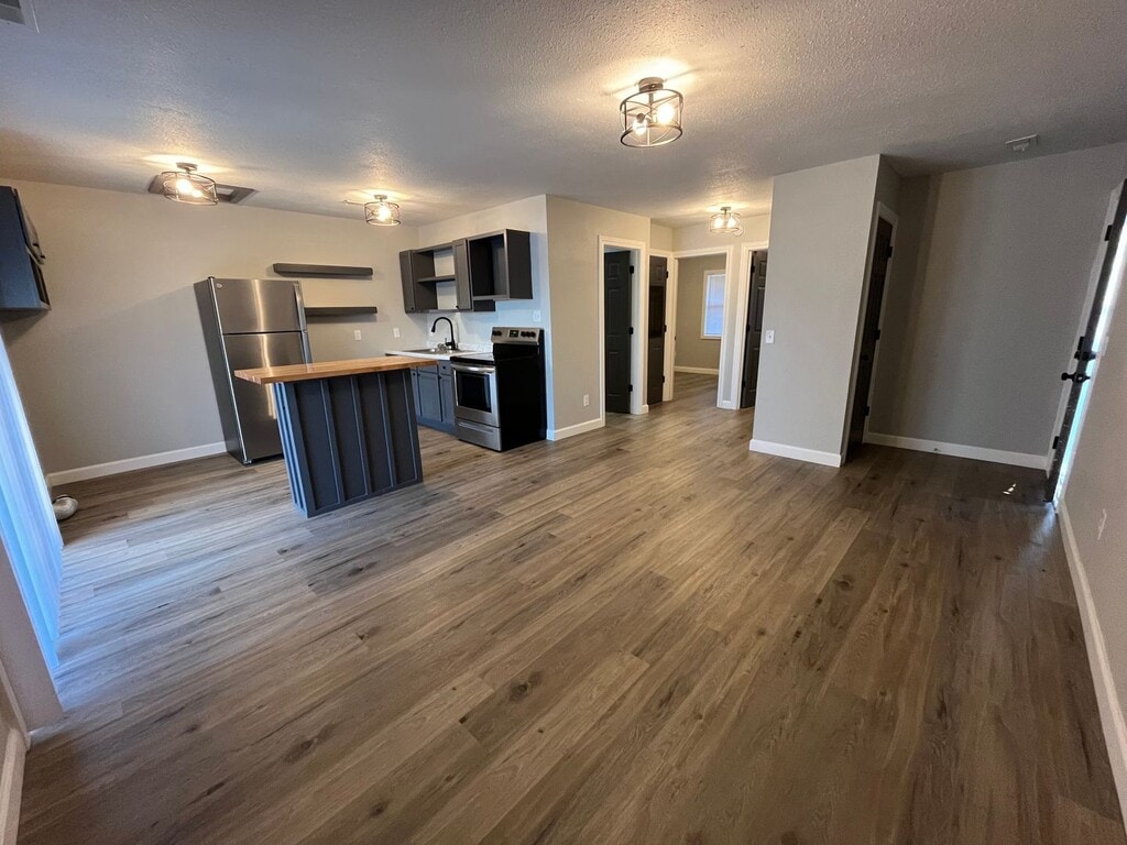 This upstairs unit features 2 bedrooms, 1 bathroom, and approximately 700 square feet of living space. Enjoy breathtaking views of Treeline Lake from your apartment. The unit also comes with newly installed vinyl flooring throughout, an open floor plan that allows lots of sunlight, washer and dryer hook-ups, and a newly refinished deck. Rent $1050, Deposit $1050 + $100 move in fee Water, sewer, trash - $75 flat fee Schedule a showing or fill out an application at For inquiries call