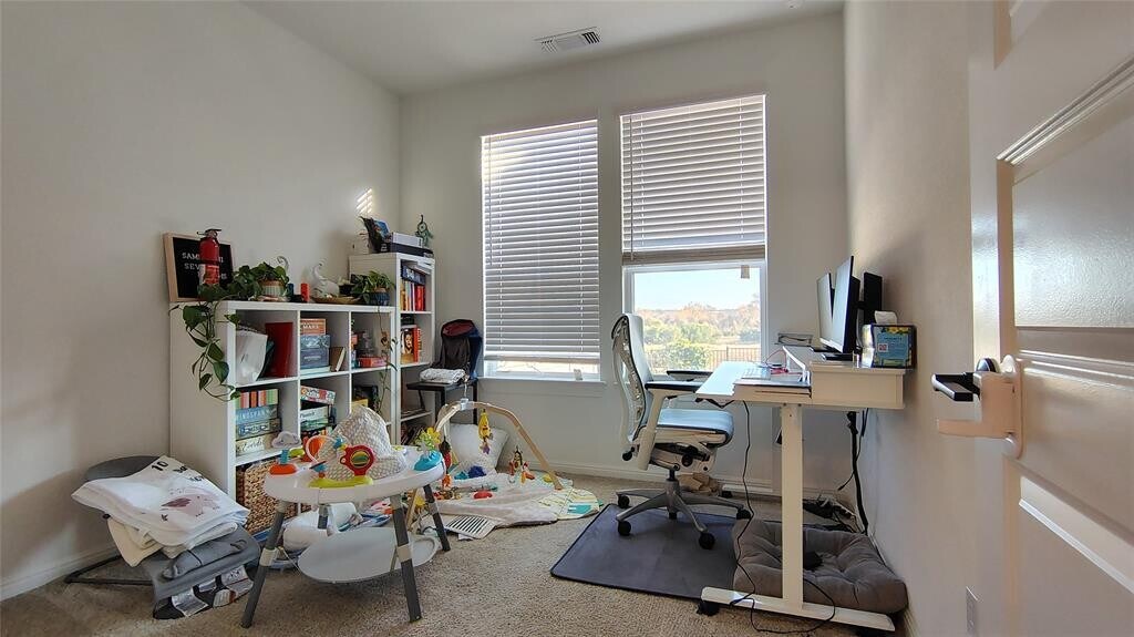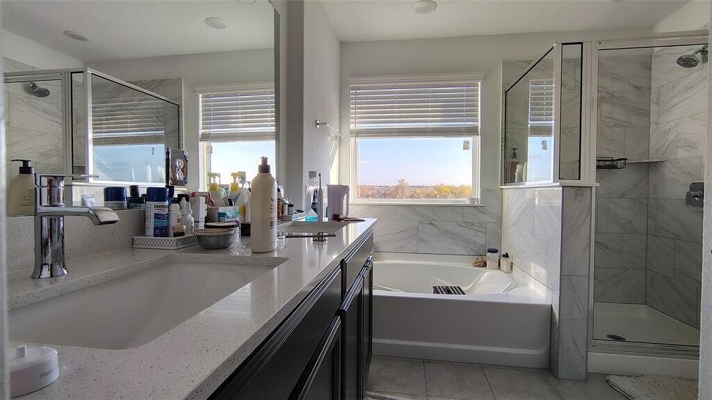 Refrigerator, washer, and dryer included. Like new, built in 2023 and first time rental. This 4 bedroom, 3 full bath modern farmhouse is located in Horizon Lake and features an open floorplan with quartz countertops, stainless steel appliances, ceramic tile flooring, recessed lighting, and a distinctive rounded kitchen island overlooking the dining and living areas. The home sits on a premium lot with no rear neighbors, offering greenbelt views from the covered patio and rooftop deck. The private owner’s suite includes a fully tiled walk in shower, soaking tub, dual vanity, and spacious walk in closet. Community amenities include a 25 acre private lake, fishing pier, pavilion, playgrounds, and miles of walking and biking trails. Professional make ready cleaning and carpet steam cleaning will be completed prior to move in.