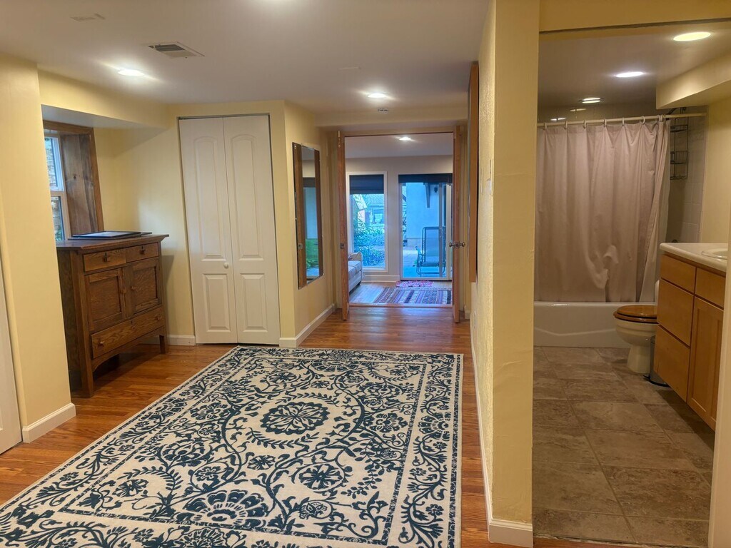 3 Bed 3 Bath home in one of Boulders most desirable neighborhoods! Minimum 6 month lease term. Walk to North Boulder Park, Mt. Sanitas hiking trails, Ideal Market, and so much more! This home can be rented furnished, unfurnished, or partially furnished. Exterior: West facing home with mountain/foothill views from the front porch. Covered front Porch has a glass enclosure perfect for sitting outside in all seasons. Xeriscape front yard with mature landscaping and lots of privacy. Back patio off the garden level basement, and one reserved uncovered parking space in the back. Main Level: Walk into this home and you are greeted with vaulted ceilings, hardwood floors, and abundant natural light throughout. Living room has a wood burning stove perfect for winter months, a secondary bedroom, and access to the glass enclosed front porch is also off the living room. Bright galley kitchen looks into the living room and also opens to a dining room and an office. Primary bedroom has vaulted ceilings, lots of light light, and a primary bathroom with a large soaking tub and skylight. Second full bathroom and laundry also upstairs. Lower Level: Garden level with great natural light and a large living room with sliding doors to the backyard. Third bedroom with its own full bathroom and an art room or 4th bedroom with built in sink and a hidden reading nook also downstairs. Backyard is shared with the Homeowner who lives in the detached home in the back. Sorry no pets. Landscaping included in rent. Don't miss your opportunity to live in one of Boulders most desirable neighborhoods! Newlands Article: Call or email to setup a showing.