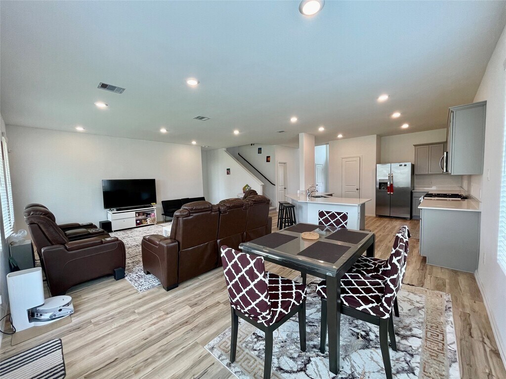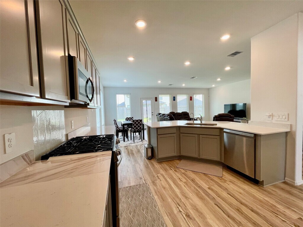 Discover this spacious and well-appointed 5-bedroom,3.5-bath home with 2,721 sq ft on an oversized lot in the desirable Dellrose community of Hockley,TX. Designed with comfort and functionality in mind,this home features an open-concept floor plan,perfect for entertaining or everyday living. The kitchen boasts quartz countertops,huge kitchen island for ample counter space,and modern finishes. The primary bedroom is located on the main floor for added privacy. Primary closet connects to the downstairs utility room. The upstairs offers four generously sized bedrooms,two full baths,and a versatile game room. Enjoy the oversized covered patio—ideal for relaxing or hosting guests. Located just minutes from H-E-B,local restaurants,and the Houston Premium Outlets,with easy access to Hwy 290. Perfect for families or professionals—schedule your tour today! **WASHER,DRYER AND REFRIGERATOR INCLUDED. Landlord is also opened to furnishing downstairs** MLS# 90980214