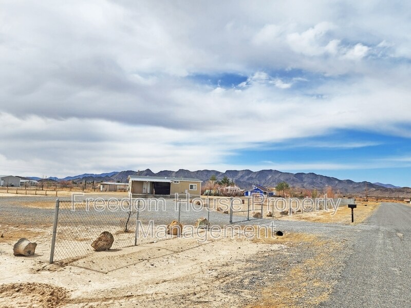 BASE RENT: $1150 This cozy 2-bedroom, 2-bathroom home sits on a large 1-acre lot, giving you plenty of space to enjoy the outdoors. The yard is fully fenced, making it great for privacy, pets, or outdoor activities. There's a nice front porch with a shade screen on the west side, so you can sit outside in the afternoon without the sun shining directly on you. The home is in a quiet area near the mountains on the west side of town. Inside, the house has easy-to-clean laminate wood floors and nice cabinets. The kitchen has granite countertops, and the bathrooms have quartz counters. It comes with a gas stove and gas water heater, both powered by propane. There are several split air conditioning units to keep the rooms cool while saving energy. Note: Propane service will be paid by the tenant. Interested in a tour? CALL .) or visit our office located at 401 S Frontage Rd office. #1, Pahrump, NV 89048. We are open from Monday-Friday 9:00 AM-6:00 PM, Saturdays from 10:00 AM-4:00 PM To make sure this property is still available, or to see all our CURRENTLY available properties, go to This website is the most accurate source of information for Freedom House Property Management, the foremost property management company in Pahrump, Nevada! Discover how you can potentially qualify for up to ZERO DEPOSIT! Be sure to check out our flyers for more information on this exciting opportunity! All Freedom House residents are enrolled in the Resident Benefits Package (RBP) for $40.95/month which includes renters insurance, HVAC air filter delivery (for applicable properties), credit building to help boost your credit score with timely rent payments, $1M Identity Protection, move-in concierge service making utility connection and home service setup a breeze during your move-in, our best-in-class resident rewards program, and much more! More details upon application. Other fees, Leasing Fee: $95, Application Fee: $55, Pet Fee: Ranges from $40 to $100, depending on pet type and size. These fees are essential to maintain the quality of our services and facilities provided. Please review these prior to application.