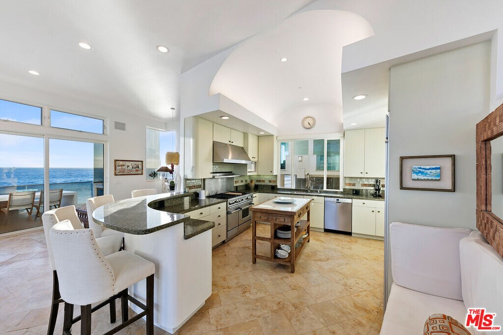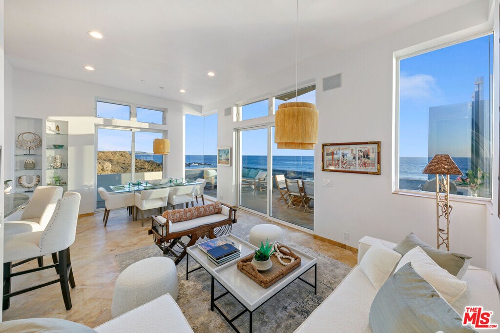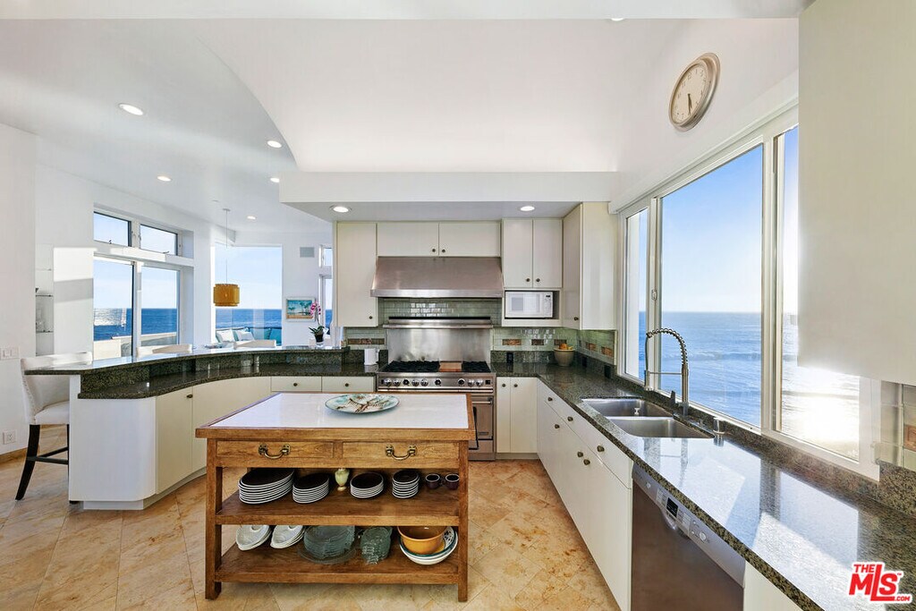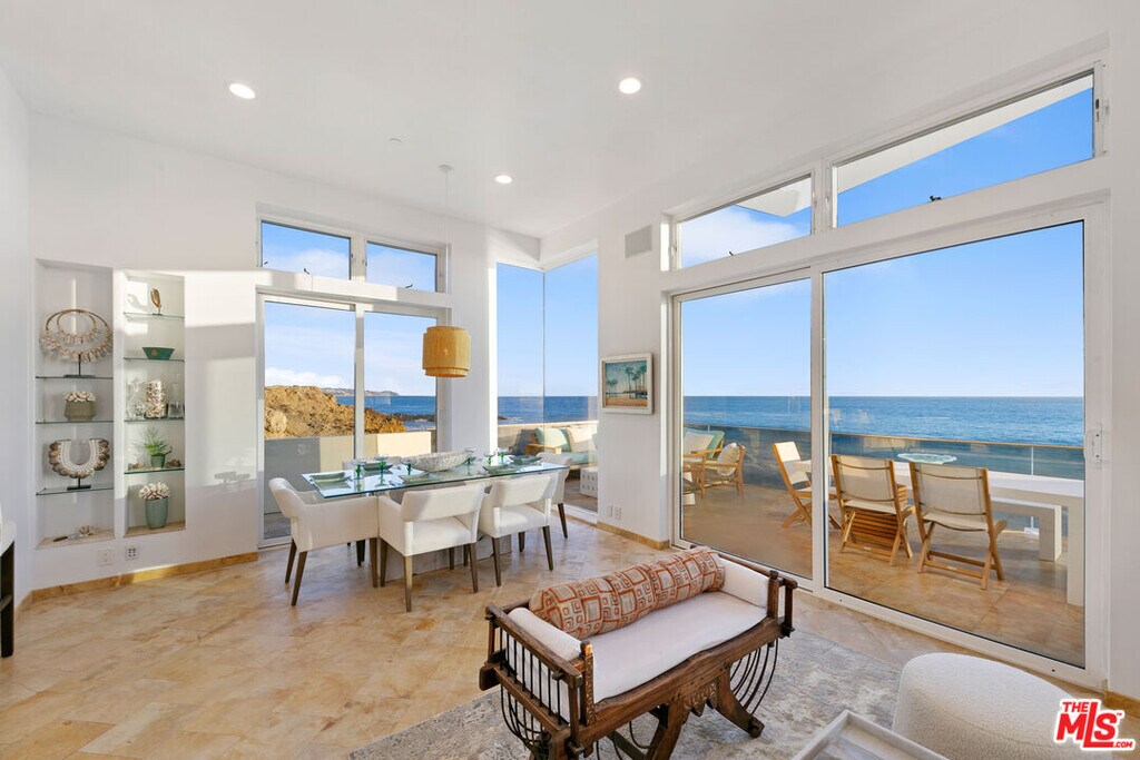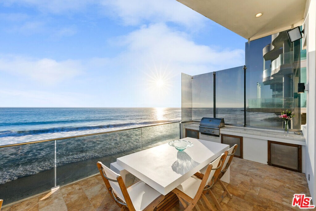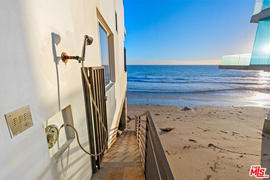 Welcome to this uniquely located seaside escape, a warmly crafted architectural residence situated in a private, gated enclave in the highly coveted Broad Beach neighborhood. This oceanfront retreat captures mesmerizing ocean views from nearly every room. Nestled on two premier beachfront parcels, the property features an impressive 60 feet of pristine ocean front. This custom home was designed 25 years ago by the esteemed Barsocchini & Associates for the current owner. This unique Malibu gem is currently being offered for long term lease. Located in the prestigious Sea Level Drive enclave, the home enjoys exceptional privacy and unobstructed views of dramatic rock formations and twinkling city lights, thanks to its prime position between two development-restricted lots. Architectural highlights include a distinctive Wave Motif copper-clad roof, artisanal art glass windows, bespoke iron railings, and inviting stone bathrooms. The welcoming interiors are characterized by soaring ceilings, expansive picture windows that bathe the rooms in natural light, and charming finishes, creating a harmonious blend of comfort and style. The bright living and dining areas on the main floor open onto a spacious wraparound deck, ideal for al fresco dining, barbecues, and relaxation by the sea. The gourmet kitchen, with its vaulted ceiling, custom cabinetry, bar seating, breakfast nook is a chef's delight. A stairway from the kitchen leads to an outdoor shower and the sandy beach. The main level also includes a bedroom and a full bath, while the lower level features a vast media/recreation room with a fireplace, laundry room, and bath. The upper floor houses three en-suite bedrooms, including the breathtaking ocean-view primary suite. This retreat features two walk-in closets, extensive built-ins, an oceanfront balcony, a spa-inspired bathroom with ocean views. Situated down the hallway lies a stylish library lounge, ideal for zoom calls, reading and relaxing. The adjacent lot provides a terraced outdoor sanctuary for entertaining and soaking in the sound of the breaking surf. The striking rock formations to the east are a source of constant visual delight. A surfer's hideaway for locals is a paddle away. The property includes a two-car garage and additional parking for four vehicles in the driveway. With its superbly executed design and one of a kind beachfront location, this residence invites you, your family and friends to indulge and enjoy the luxury of the Malibu beach lifestyle. MLS# 26635115