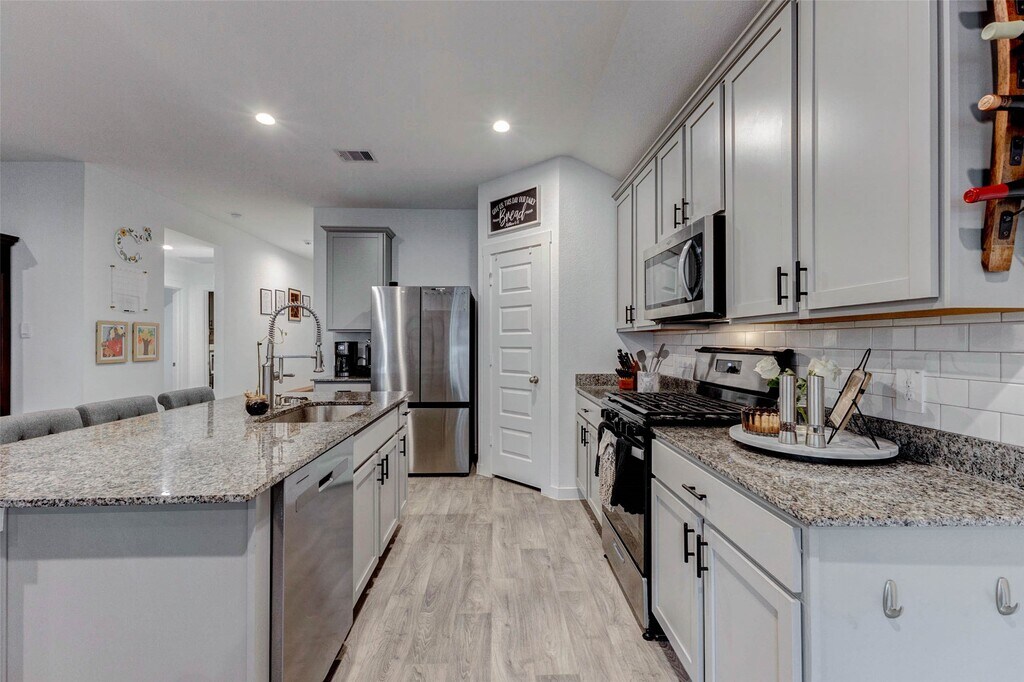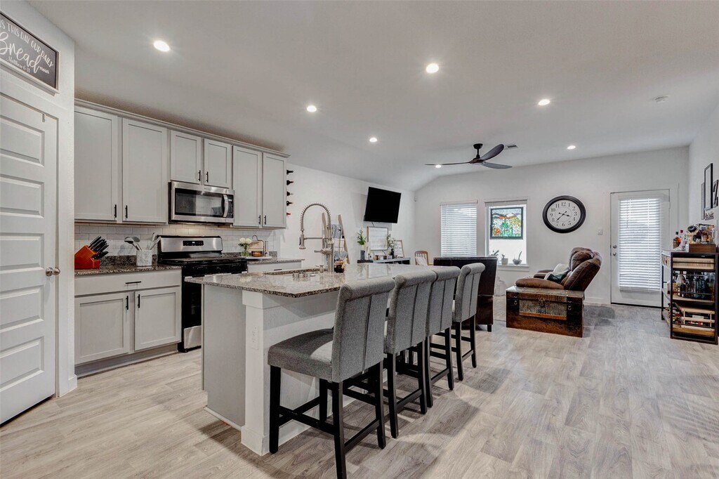 Welcome to this beautifully maintained one-story home located in a newly developed master-planned community in Fulshear,zoned to highly regarded Lamar Consolidated ISD. This 4-bedroom,2-bath residence features a well-designed open-concept floor plan that effortlessly connects the kitchen,dining area,and living room—ideal for entertaining and everyday living. A versatile flex room in the back offers endless possibilities and can easily be converted into a home office,workout room,or additional living space. Step outside to enjoy the newly added covered back patio,perfect for relaxing or hosting guests.Residents enjoy access to exceptional community amenities,including resort-style pools,a clubhouse,splash pads,walking trails,and playgrounds,along with the convenience of an elementary school located within the neighborhood. This newly built and well-maintained community also offers the advantage of a low tax rate. Schedule your private showing today! MLS# 33710281