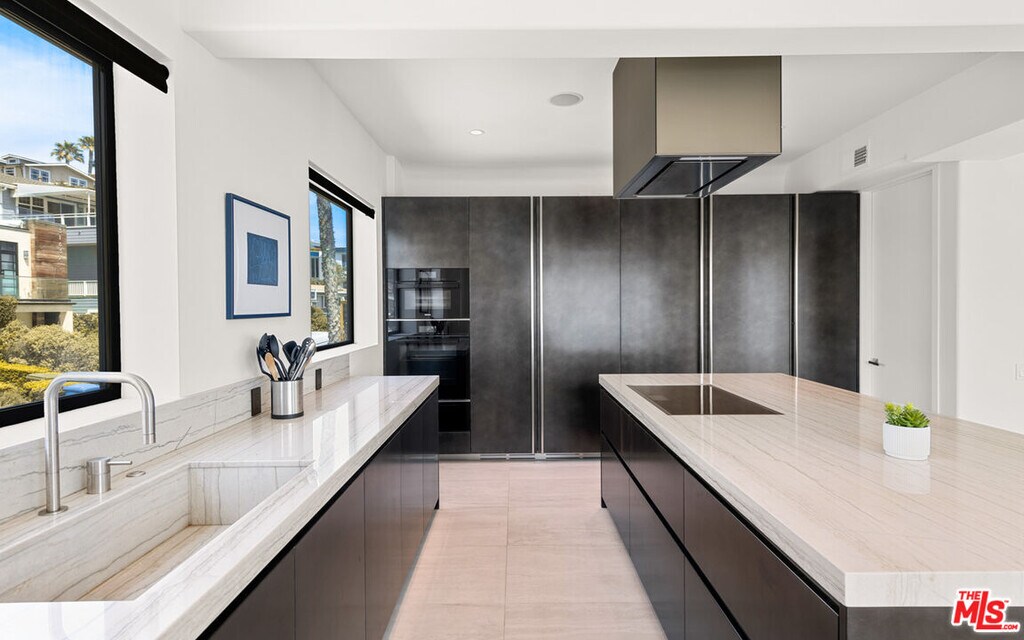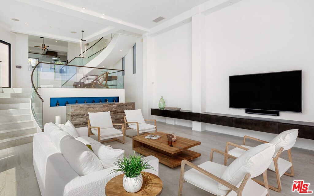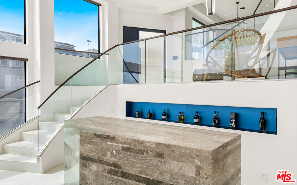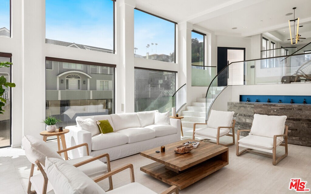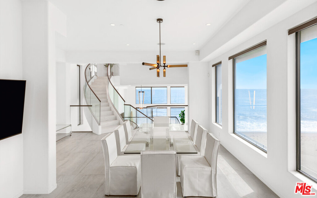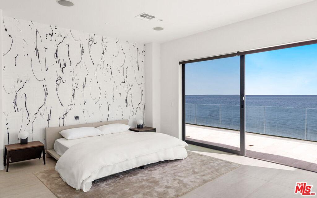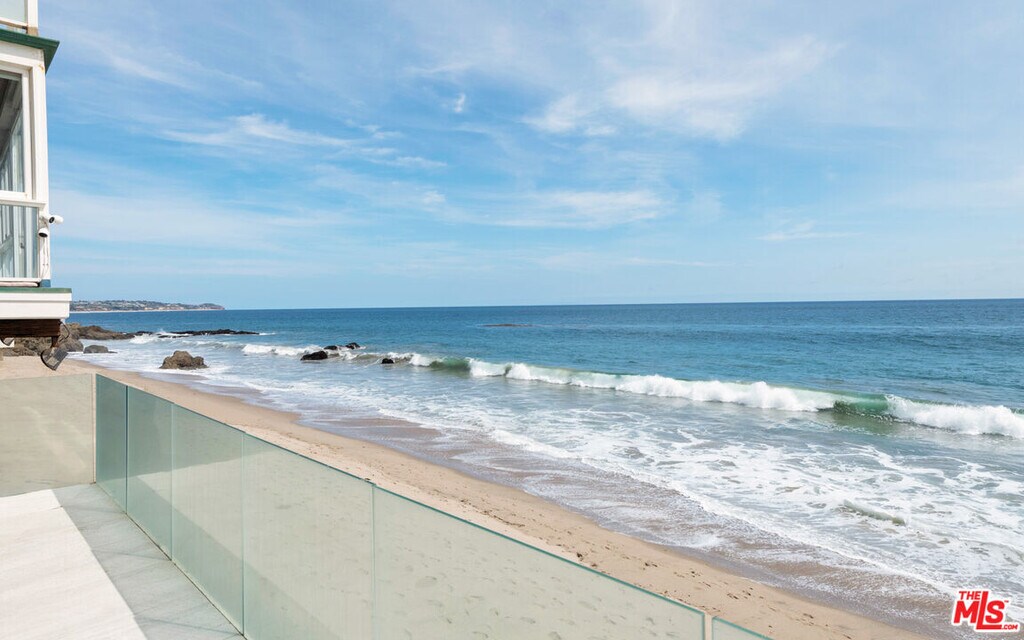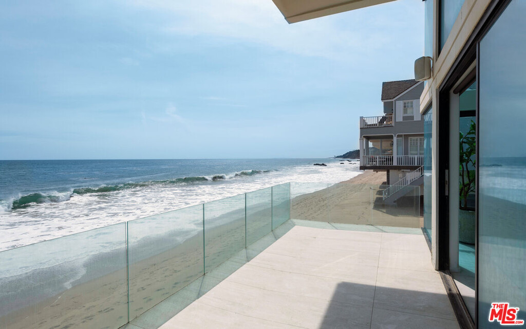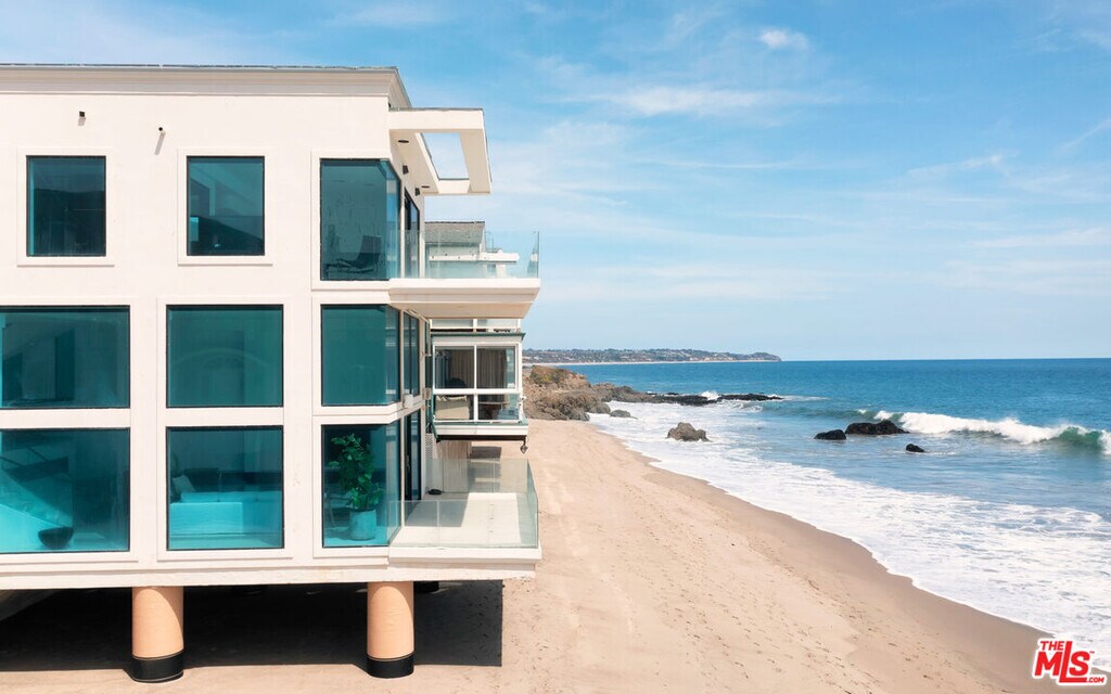 A sleek contemporary with walls of glass and majestic ocean, shoreline, and island views, this sensational home is designed for heavenly relaxation and sophisticated entertaining. Built on three levels for maximum enjoyment of the sunrise-to-sunset panorama, the home's wraparound windows, exceptionally high ceilings, and gorgeous furnishings provide a tranquil setting on the sandy shore of Sea Level beach. The entry, with a huge pivoting glass door, opens onto a mezzanine with a small seating area. Steps lead down to the lower level, where the enormous living room has floor-to-ceiling windows on two sides, a tiled bar, handsome built-ins, and wide glass doors that slide open onto a lighted beachfront balcony with ample room for dining, entertaining, and sea- and star-gazing. Also on this level is a powder room, laundry, and a bedroom. From the foyer, steps lead up to the middle floor, which is home to a beautiful chandelier dining area, chef's kitchen, and the primary suite. The kitchen is equipped with top-quality appliances, an island with bar seating, sleek built-ins, and a walk-in pantry with a beverage cooler. The primary suite is a spacious and private retreat that commands spectacular views and opens onto a large oceanfront deck. The suite has a built-in beverage cooler, walk-in closet, and a lovely spa-style bath. A skylight stairway leads to the top floor, home to a television/reading lounge and three bedrooms, one with a private balcony. The home is also equipped with smart-home features, multizone air conditioning, built-in speakers, a two-car garage, and a stairway to the beach below. This is a stunning new oceanfront residence and the perfect setting for comfortable living and generous entertaining. MLS# 25609927