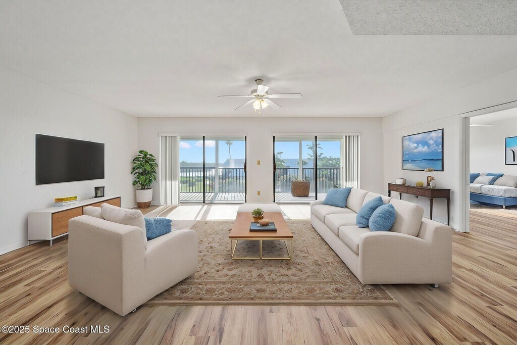 Welcome to your serene riverfront escape-where every day ends with a breathtaking sunset. This spacious 2 bed/2bath condo offers the perfect blend of comfort,light,and water views in a beautifully maintained community. Lots of natural light with 3 sliders to the large screened balcony. Primary suite includes an en-suite bath and generous closet space,while the second bedroom is ideal for guests,home office or both. Don't forget the garage right across from the elevator! Enjoy resort-style amenities such as a heated pool,hot tub,tennis courts,pickleball and direct river access perfect for paddle boarding,kayaking and fishing. Just a short walk to the beach,shopping,and restaurants. Experience the best of beachside living right here! A short bike ride away to downtown. Close to Port Canaveral,NASA,SPACEX and Blue Origin.