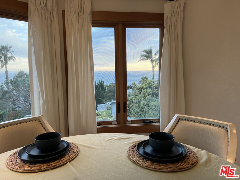 Enjoy privacy in this elegant gated ocean view Mediterranean retreat in Malibu's Broad Beach community , just steps from the beach. The center courtyard is surrounded by lush landscaping with a flowing fountain, jacuzzi and good old fashioned porch swing . Breathtaking ocean view in most rooms make for a beachy feel. The master suite leads to the newly remodeled spa bathroom with claw-foot tub and steam shower.The master also has a lovely sitting area with ocean views. 2 Additional bedrooms and a shared bath complete the. sleeping level. The designer kitchen with pendant lighting is chic and functional with 2 prep islands and an informal dining area as well as formal dining room. A spacious family room/ den with a sleeper sofa, can be used as the 4th bedroom. The attached gym opens to the courtyard with the view of garden. Walking distance to the Vintage shoppoing center , as well as 4 beach entrances on Broad Beach. MLS# 25-480469
