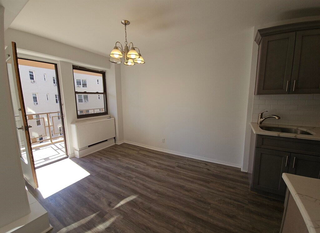 Three-year assessment fully paid by owner! Perfectly positioned in the center wing of Park River Towers, this beautifully renovated one-bedroom condo offers comfort, privacy, and year-round balance on the 4th-floor Skyview Terrace, one of North Bergen’s most desirable addresses along prestigious Boulevard East. Featuring 773 sq ft of open-concept living, the modern kitchen flows into a bright living and dining area that opens to a private balcony with partial NYC skyline views and James J. Braddock Park. Designed for functionality, the unit includes five spacious closets, a sleek modern bathroom, and all appliances including a dishwasher. Major capital improvements make this home completely worry-free: new roof installed in 2024, new boiler install FALL 2025, and parking deck (on the edge) repairs scheduled soon, all covered by the paid assessment. Assigned covered parking under the deck and all utilities included offer exceptional convenience and value. Across the street, the 167-acre James J. Braddock North Hudson Park provides trails, a lake, tennis/pickle ball and more, while NJ Transit to NYC on Boulevard East, Nearby the NY Waterway Ferry, Lincoln Tunnel, and City Place shopping in Edgewater, are all nearby. Laundry on-site on ground level, Two Elevators in the building. Unbeatable location, ideal for comfortable living or a smart investment on North Bergen’s Gold Coast. 92 Units, 8 Floor Building. Move-in before the Holidays!