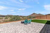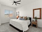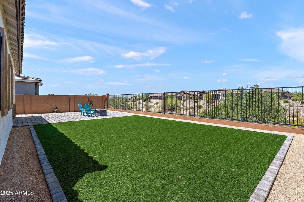 Welcome to this beautifully designed 4-bedroom,3-bathroom single-level residence that perfectly blends luxury,functionality,and serene desert living. Situated in a desirable neighborhood,this home offers an expansive open floor plan ideal for both everyday living and entertaining. Enjoy sweeping views of the natural desert landscape through a premium view fence overlooking a tranquil wash,creating a private and peaceful backyard oasis. The heart of the home is a gourmet kitchen featuring stainless steel appliances,an oversized island with bar seating,granite countertops,custom cabinetry,and a pantry for the inspired home chef. This residence boasts a primary retreat with and en-suite bathroom,dual primary walk-in closets,dual vanities,in the spacious primary bathroom