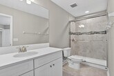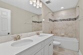 Welcome to this brand-new,never-lived-in home located in one of the area’s newest and most desirable communities. Offering over 3,500 square feet of thoughtfully designed living space,this expansive residence is ideal for those seeking comfort,functionality,and room to spread out—perfect for multi-generational living. This impressive 5-bedroom,4 full bathroom home features a highly desirable layout with a first-floor bedroom and full bath,ideal for guests or extended family. The main level showcases tile flooring throughout,a formal dining space,and an open-concept living area that flows seamlessly into the gourmet kitchen,complete with 42-inch cabinetry,white quartz countertops,soft-close cabinetry,double wall ovens,electric cooktop,and an oversized island designed for both everyday living and entertaining. Upstairs,you’ll find a spacious loft with recessed ceiling detail,offering a versatile second living area,media room,or home office. The primary suite is generously sized,featuring recessed lighting,a massive walk-in closet,and a well-appointed bathroom with a fully tiled walk-in shower and upgraded glass enclosure. Additional bedrooms are oversized,with walk-in closets and easy access to multiple full bathrooms. This home is loaded with upgrades,including the Diamond upgrade package,8-foot front door,upgraded rod iron spindles and railing,recessed lighting throughout,and a washer/dryer with added upper cabinetry in the laundry room. The three-car tandem garage features a builder-installed epoxy finish,adding both durability and style. A covered front porch provides a welcoming entry,while the backyard offers added privacy with fencing along the rear. Located in the sought-after Cobblestone community,residents enjoy access to exceptional amenities,including a resort-style pool and cabana,spacious event lawn,tot lot and play area,dog park,and scenic walking trails surrounded by preserved green space—creating a peaceful and well-rounded lifestyle. This is a rare opportunity to lease a never-occupied,fully upgraded home offering exceptional space,style,and a true resort-style community lifestyle. MLS# TB8496473