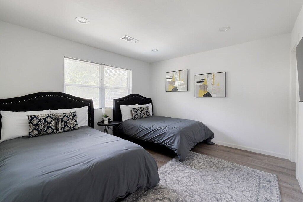 Welcome to this stunning 4-bedroom home with a private pool and large outdoor space near downtown Dallas. Ideal for families, this fully equipped property boasts comfortable beds, a bright living space, and a fantastic backyard, perfect for pets. Enjoy easy access to top attractions like Klyde Warren Park, Sixth Floor Museum, American Airlines Center, and Dallas Zoo. This brand new home features a large living room, 4 spacious bedrooms, and 2.5 bathrooms. The primary check-in is through a smart lock on the front door. The home includes a laundry room with a washer and dryer, and bathroom essentials such as shampoo, conditioner, towels, and a hairdryer. The master bathroom offers a large shower for your comfort. The kitchen is fully equipped with stainless steel appliances, kitchen utensils, and a coffee maker. The master bedroom includes a smart TV with streaming apps, and the living room features a beautiful entertainment center and a super comfy sofa bed that can sleep up to 2 at night. Parking is available in the driveway, in front of the home, and on the street. If you would like to use the hot tub or heating for the pool, there is a $100 per day extra fee for pool heating. If you would like to use either without heating, there is no charge. Centrally located in Old East Dallas, this home is just minutes away from Uptown, Deep Ellum, and Downtown Dallas. With plenty of local attractions nearby, including multiple museums, public parks, the convention center, and the American Airlines arena, you'll have plenty of options to explore. Knox Henderson, Lower Greenville, and McKinney Street are all within your reach. Guests have full access to the home and we offer self-check-in. The indoor fireplace is not for guest use and tampering with it will result in a $500 fine. Guests must agree to not disturb neighbors at all times and observe quiet hours from 10pm to 8am. The home is monitored with decibel sensors for compliance with this noise policy. No smoking is allowed inside the property, and a $250 fee per day will be charged if violated. Pets are welcome with a fee, and breed restrictions may apply. No parties are allowed, and a noise monitoring device is in place. Lost door keys or remote fobs will incur a $150 replacement fee. The garage is not available for guest use, but parking is available in front of it. Only flush toilet paper down the toilet to avoid a $200 plumbing fee. Do not pour grease down any sink to avoid a $200 plumbing fee. Do not tamper with the doorbell, as it will lead to a $500 surveillance tampering fee. The home offers high-speed Wi-Fi and a smart TV loaded with all your favorite streaming apps, making it a remote work-friendly environment.