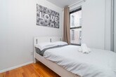 The advertised rate of $3,681/month is the lowest available price, based on a 30 day(s) stay with a move-in date of December 26, 2026. Rates vary depending on the duration of stay, season, and other parameters. For exact pricing and additional pricing components, please visit our website and enter your desired move-in and move-out dates. The rate is applicable when billed upfront; it can be higher if billed in multiple payments. Experience a charming apartment in the heart of the Upper East Side on East 94th Street between 1st and 2nd Avenue (walk-up building). Perfect for couples, solo adventurers, business travelers, and families, feel at home in this apartment that is just steps from the Q subway station, Central Park, and the Guggenheim Museum. This spacious apartment offers comfort and convenience with two separate bedrooms, a cozy living room with a dining area and a sofa bed, a bathroom, and a fully equipped kitchen. The inviting living room features a comfortable sofa that converts into an additional bed. The fully equipped kitchen is adjacent to the living room and includes a toaster, microwave, oven, electric kettle, fridge/freezer, stove and/or toaster oven, and an electric plate. Clean linens and towels are provided. For your entertainment, a flat LCD TV hangs on the wall, offering a variety of channels through the Roku streaming TV. All pets must be approved in advance, and there is a pet fee ranging from $200 to $300. Additional cleaning can be arranged for an additional fee. Discover the vibrant neighborhood of the Upper East Side, where convenience and excitement converge. This area offers a wealth of highlights just steps away from the apartment. Immerse yourself in a shopper's paradise with renowned designer stores, indulge in a culinary journey at well-known restaurants, or enjoy a night out at the nearby cinemas, comedy clubs, and coffee shops. Nature enthusiasts will delight in the proximity to Central Park, the Metropolitan Museum, and the Guggenheim Museum. You'll find drug stores, nail salons, a US Post Office, FedEx and UPS locations, banks, money exchanges, barbers, Whole Foods Market, and Amazon Hub within walking distance. The Q Second Avenue/Broadway Express subway station is just a few steps away, ensuring easy access to the rest of the city. Additionally, the 4, 5, 6 Green Line 86th Street Subway Station and the M15 cross-town bus are within walking distance. Utilities such as electricity, gas, Wi-Fi, and streaming Roku TV are not included in the monthly rent and will cost $330 per month (between June 1st and October 1st, utilities are $360 per month). A late check-in fee of $50 will be charged for arrivals after 10 PM, and a fee of $100 will be charged for arrivals after midnight. Check-out time is by 11 AM. Before you check out, please empty the refrigerator and throw away all trash. The furniture and decoration in the apartment may vary from the photos listed online. For long-term leases over 6 months, a VOE/study letter and a copy of a current paycheck are required. [SI]