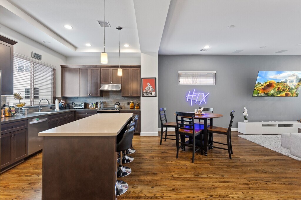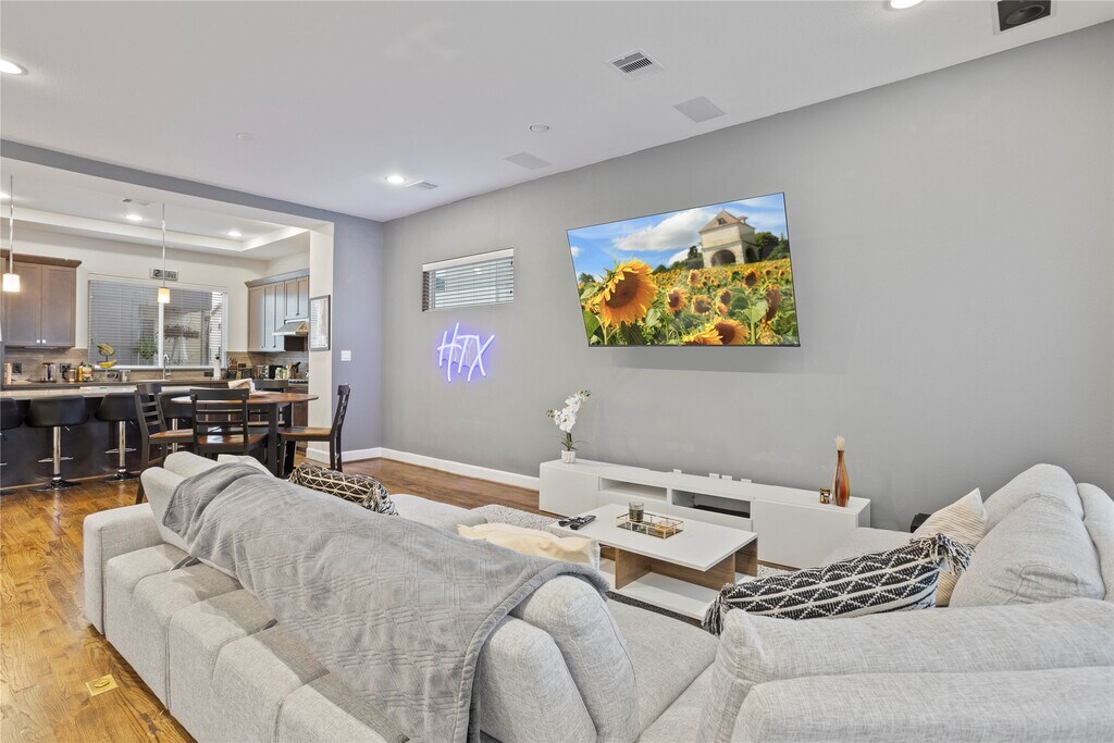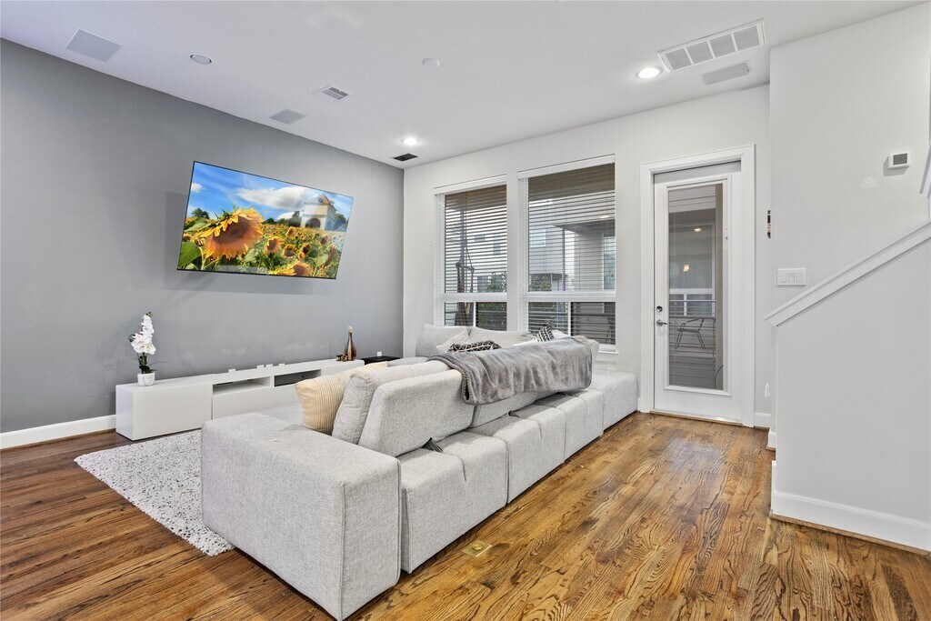 Welcome to Eado Edge,a gated community offering a blend of modern comfort and convenience in the heart of Houston's vibrant scene.THIS FURNISHED CORNER LOT property boasts a 1st floor bedroom with a full en-suite bathroom. The seamless open concept on the 2nd floor creates a fluid connection between the living,dining,and gourmet kitchen space. Accentuated by high ceilings,designer touches,and a charming outdoor balcony. Spacious guest bedroom with a full bath on the 3rd floor.The primary suite on this level offers high ceilings and an en-suite bathroom complete with dual sink vanity,freestanding shower and soaking tub. Conveniently positioned near Minute Maid Park,and Downtown with a short drive to airports,the Medical Center,University of Houston,and Rice University. Revel in Downtown views from the private rooftop!.The community offers guest parking and a dog park. Contact us for viewing and immerse yourself in the vibrant lifestyle this property and its surroundings offer. MLS# 69895384