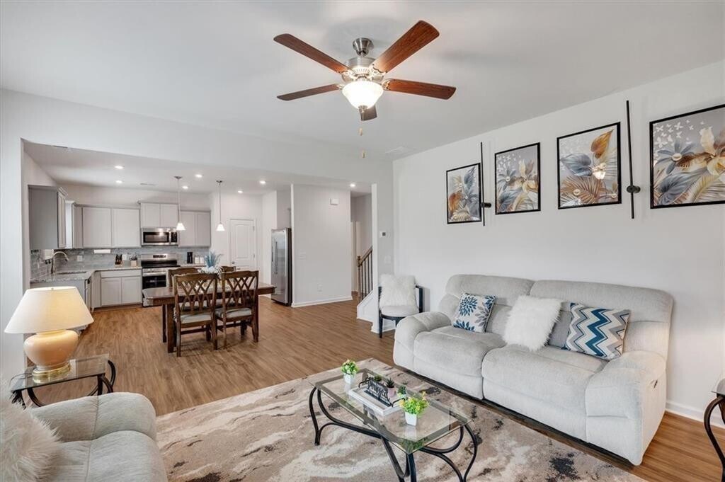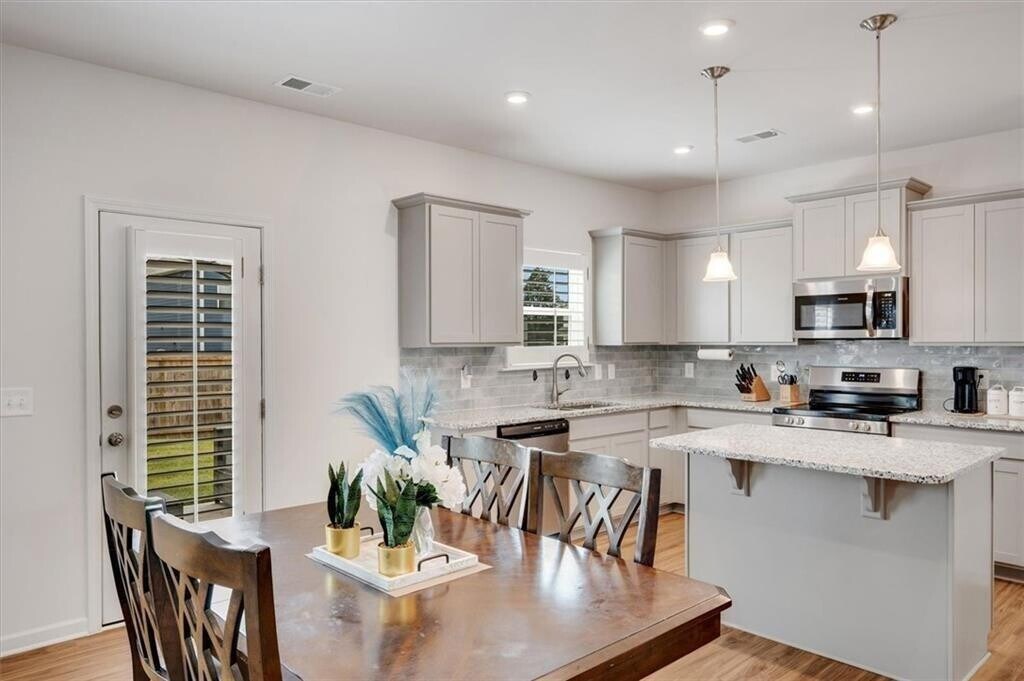 Move right into this beautiful one-year-old,4-bedroom home in the desirable Duncan Farm community! Featuring 2.5 bathrooms,2,053 sq ft,and a fully fenced backyard,this home is perfect for comfortable modern living. Step into a bright foyer with 9-foot ceilings and luxury vinyl plank flooring that flows through the main level. The open floor plan offers a versatile flex space—ideal for a home office—plus a spacious kitchen with granite countertops,large island,walk-in pantry,and stainless-steel appliances. The living area is roomy and welcoming,perfect for relaxing or hosting guests. Upstairs,enjoy a spacious primary suite with a walk-in closet,double vanity,soaking tub,and separate shower. Three additional bedrooms,a full bath,and a convenient upstairs laundry room provide plenty of space for everyone. Relax outdoors on the back porch or enjoy the large,level fenced yard. Located directly across from Hamilton Crossing Park and minutes from shopping,dining,and major highways,this home offers the perfect mix of comfort and convenience. MLS ID 7711535