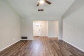 Cute Cute 3-2-2 in established neighborhood. Newish luxury vinyl plank floors, paint, granite countertops in kitchen and bathrooms. and newish appliances . Kitchen cabinets and bathroom cabinets have been painted. New shower in Master bathroom. Large fenced backyard. Window coverings and ceiling fans in all the bedrooms. Washer and dryer hookups are in the garage. Come see this welcoming home and make it yours.