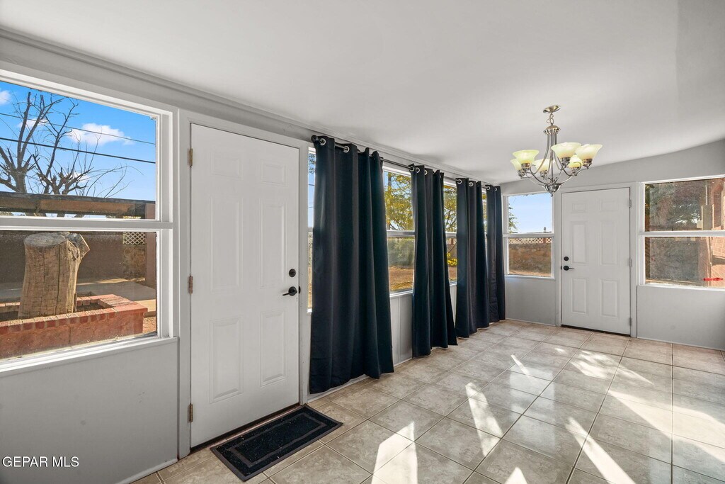 Recently remodeled 4 bedroom,2 bathroom home available for rent in West El Paso,offering 1,923 square feet of living space. This charming property is conveniently located just minutes from Mesa Street and The Shoppes at Solana Mall. Features include all tile flooring with no carpet,a spacious sunroom perfect for relaxing or entertaining,refrigerated air for year-round comfort,and a large backyard with extra storage space. With modern upgrades throughout,this home is move-in ready and ideal for those seeking comfort and convenience. Don't miss out on this incredible rental opportunity!