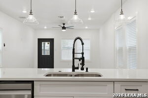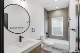Situated directly across from Denver Heights Park, this home showcases a welcoming open-concept design that flows from the entry through the dining area and into the kitchen. The kitchen is equipped with an island, breakfast bar, stainless steel appliances, pendant lighting, recessed lighting, and custom cabinetry. The home offers four bedrooms, including a first-floor bedroom with access to a full bath-perfect for guests or flexible living. Upstairs features two secondary bedrooms and a spacious primary suite complete with a walk-in closet, private balcony, and an en-suite bath with a walk-in shower and double vanity. Ceiling fans are installed throughout the home, including the living area. The backyard features a covered patio and privacy fence, ideal for outdoor relaxation or entertaining. Conveniently located near downtown San Antonio attractions such as the River Walk, Alamodome, Pearl Brewery, AT&T Center, San Antonio Missions, and a variety of dining and entertainment options.