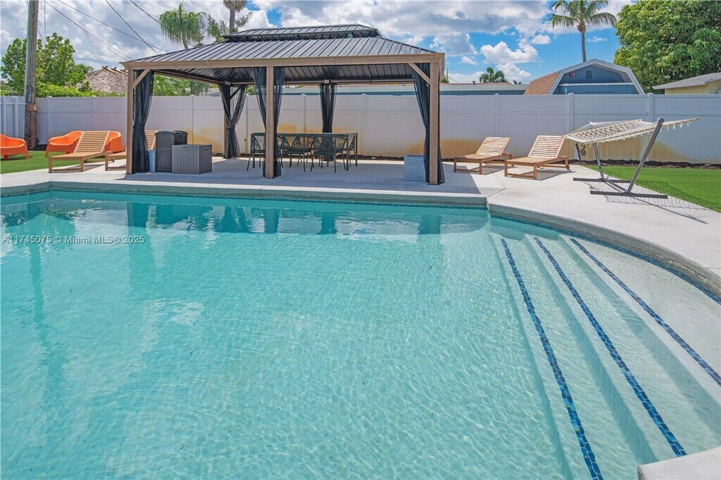 Courtesy of Posted by Andrew Coleman with EXP Realty . See Virtual Tour. You will definitely enjoy your stay in this fully furnished home located in a great neighborhood only 6 minutes to everything beautiful Deerfield Beach has to offer. The ample backyard offers plenty of space and games to entertain and for the kids to play while enjoying the sunset from the pool. The home features a circular driveway with room for a boat or jet skis, all impact windows and doors, updated floors and bathrooms, new washer and dryer, new indoor and outdoor furniture, new gazebo, new synthetic lawn throughout the backyard, new TV's in every room, and a very well-equipped gym.