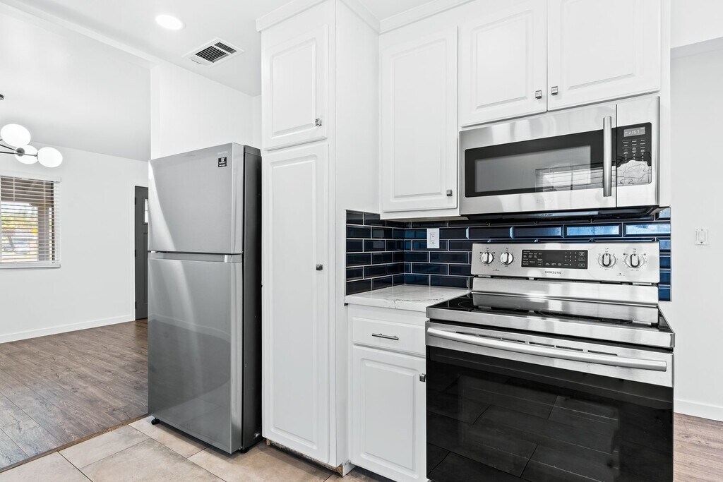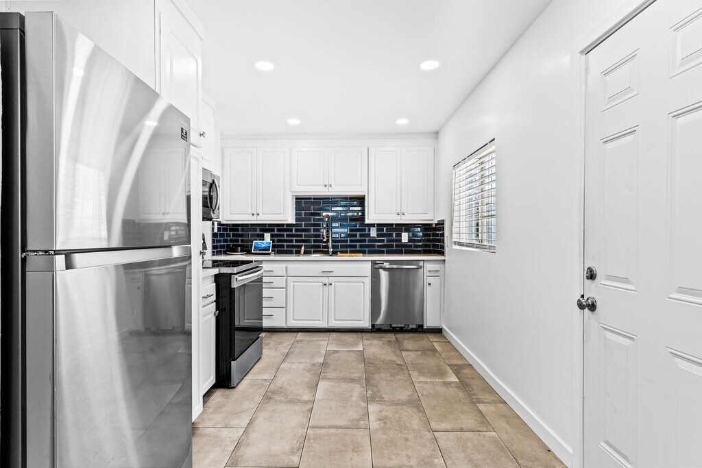 TAKE A VIRTUAL TOUR NOW: * 3 Bed, 1 Bath House | 1050 Sqft * Attached 2x Car Garage That Leads to Rear Yard * Fenced Front Yard * Plank Flooring Throughout * Recessed Lighting & Modern Fixtures Throughout * Included Stainless Steel Fridge, Stove & Dishwasher * Central Heating & A/C * Washer / Dryer Hookups * No Pets Please This updated 3-bedroom, 1-bathroom home provides 1,050 square feet of living space on a 5,175 square foot lot. The exterior features a fenced front yard area, a two-car garage with a modern roll-up door with a driveway that conveniently leads to the backyard. Inside, the home offers a clean and contemporary feel with fresh white paint, wide-plank flooring, and recessed lighting throughout. Upgraded black hardware on all interior doors and faux wood blinds on the windows add to the modern finish while the main living space is highlighted by a stylish dark grey entry door a modern multi-globe chandelier. The bedrooms also feature updated flush-mount LED ceiling fixtures. The kitchen comes fully equipped with a refrigerator, stove, and dishwasher. The bathroom has been entirely renovated to feature a white vanity with black hardware, a mirrored medicine cabinet with integrated modern lighting, and black hexagonal floor tiles. The bathtub is surrounded by custom white herringbone subway tile and finished with matte black shower fixtures. For year-round comfort, the property includes central air conditioning and forced-air heating. The home comes equipped with washer and dryer hookups, making laundry a breeze. We're excited to help you find your next home! Here are some helpful links to get you started: Open House Schedule: View All Our Listings: Tenant Requirements: We recommend driving by the property before you apply to familiarize yourself with the neighborhood. Move-In Dates: Please note that all move-in dates are an estimate. The final date depends on the previous tenant moving out and the time needed for repairs. A more accurate timeline will be provided once a holding deposit is received. SLPM Property Management | Steve Francois - BRE license #02016432