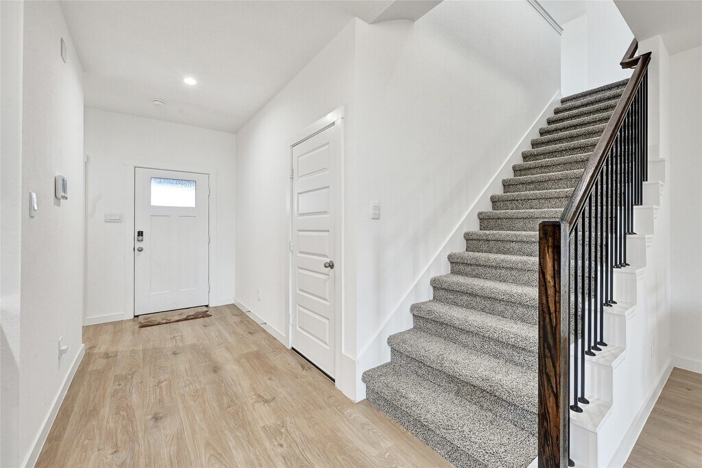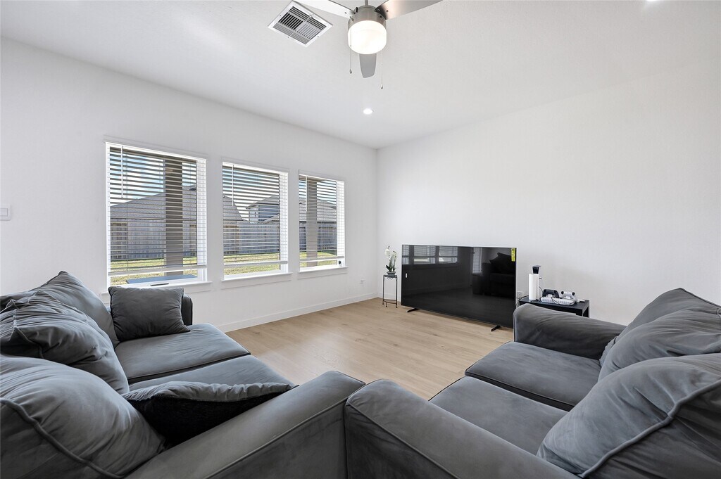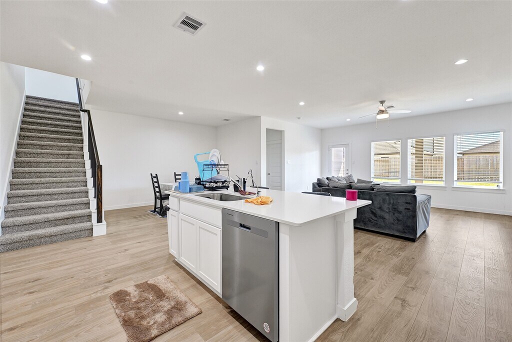 Ziad Al KayaliBeautiful two-story home with 4 bedrooms, 3 baths, and a 2-car garage. The foyer leads to a study and powder room with a linen closet. The kitchen features a breakfast bar, White Silestone countertops, stainless steel appliances, white cabinets, and a corner pantry. An open layout connects the kitchen, dining, and family room, with extra storage under the stairs. The private primary suite includes a large shower, dual vanities, a water closet, and walk-in closet. Upstairs offers a loft, three more bedrooms, and a full bath. A covered patio extends off the family room, with Nimbus Oak LVP flooring and Silver Dollar carpet throughout.