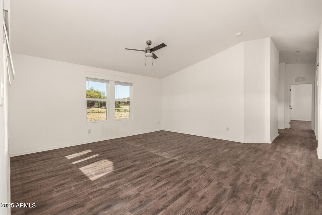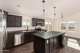 Brand-new manufactured home in desirable rural Scottsdale/Rio Verde area with breathtaking desert views! This light and bright 3-bedroom,2-bath residence offers an open floorplan with luxury vinyl plank flooring throughout. The modern kitchen has upgraded shaker-style cabinets,stainless steel appliances,kitchen island & ample storage. Washer & dryer are included. Situated on a large lot,the property offers a fully fenced yard and a covered back patioperfect for taking in views of Four Peaks. Covered carport parking & storage container provide excellent space for gear,tools,or recreational ''toys'' such as dirt bikes and ATVs. The home is on hauled water. This location is ideal for outdoor enthusiasts seeking space.